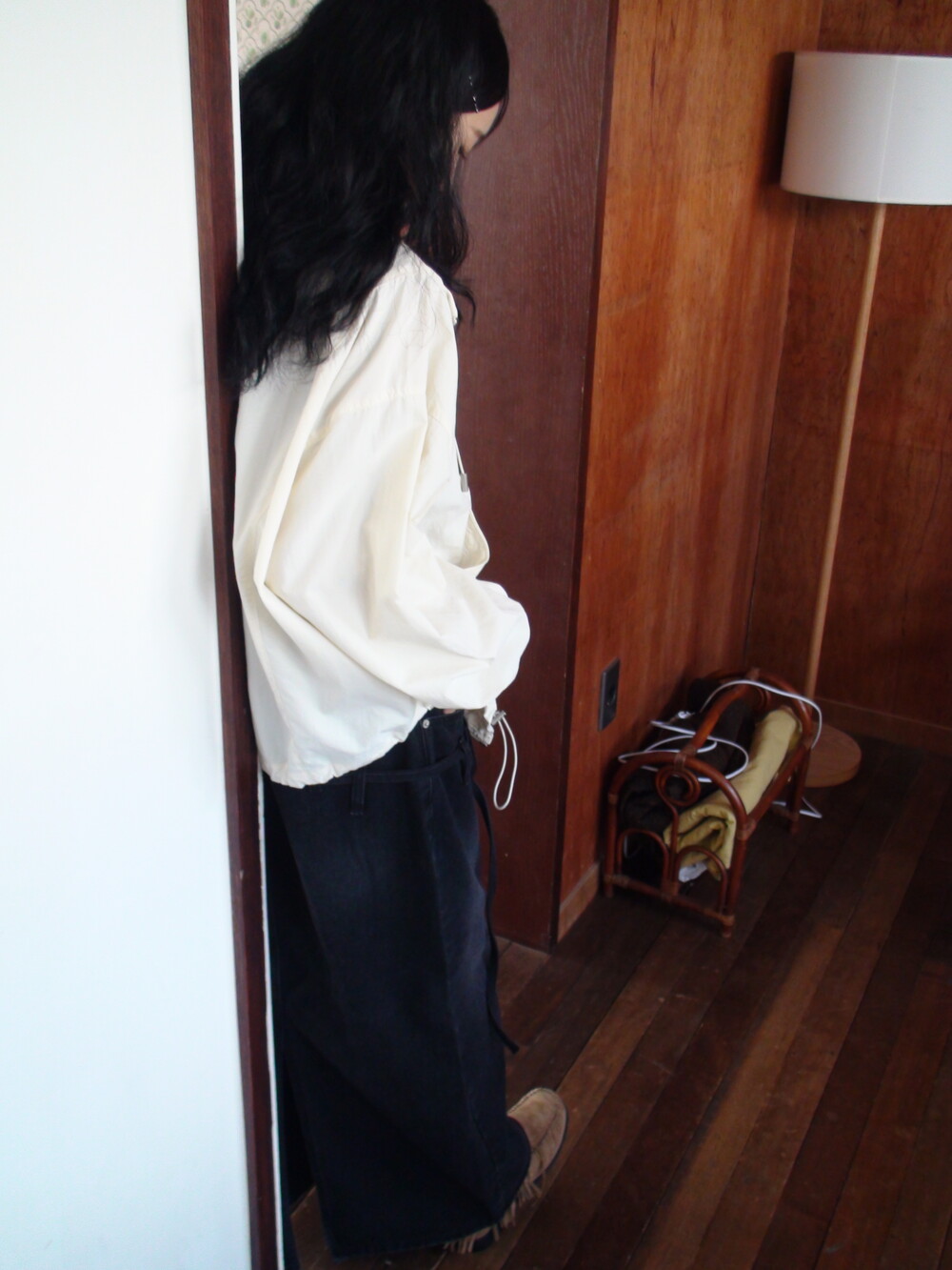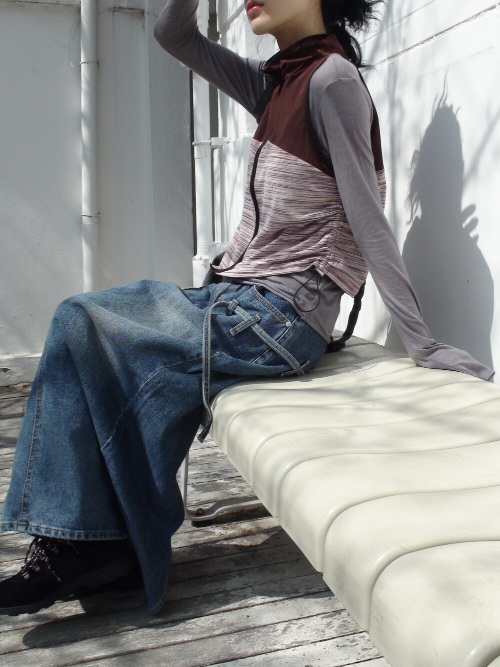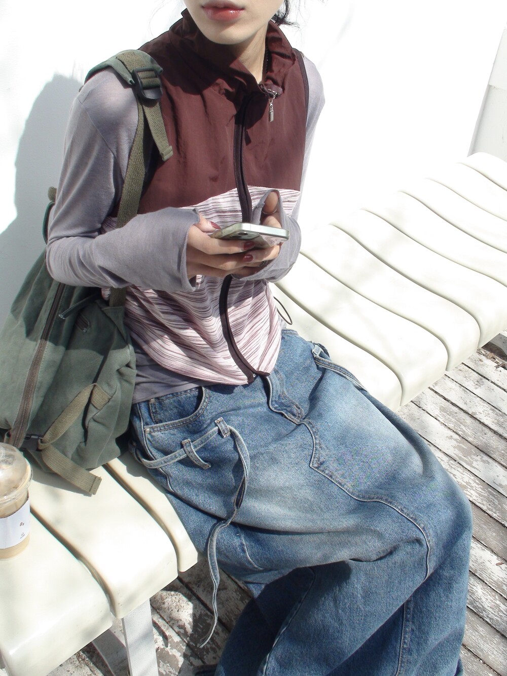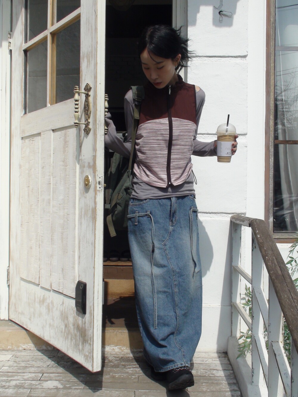 비교적 넉넉한 웨이스트라인으로 안정감있게 착용되어로우라이즈로 연출이 가능하며,