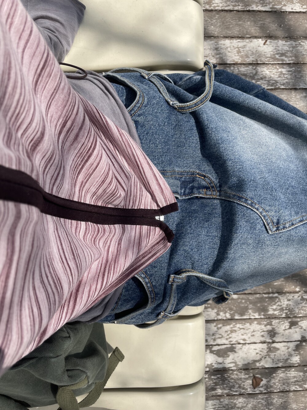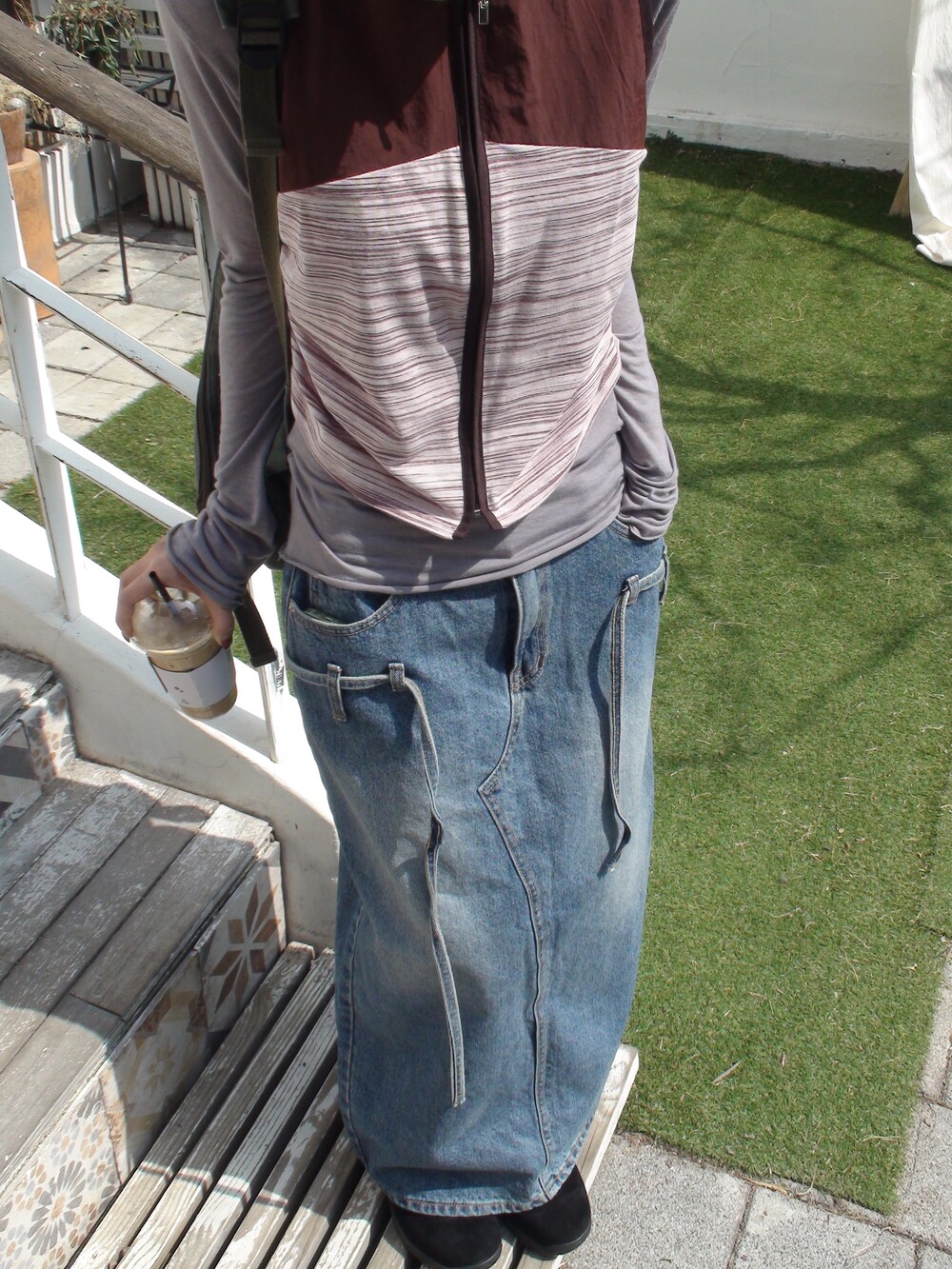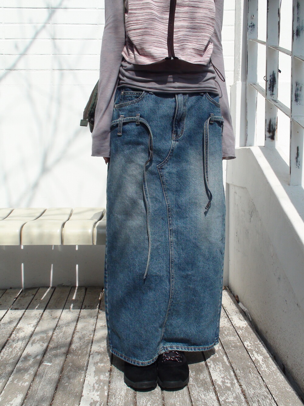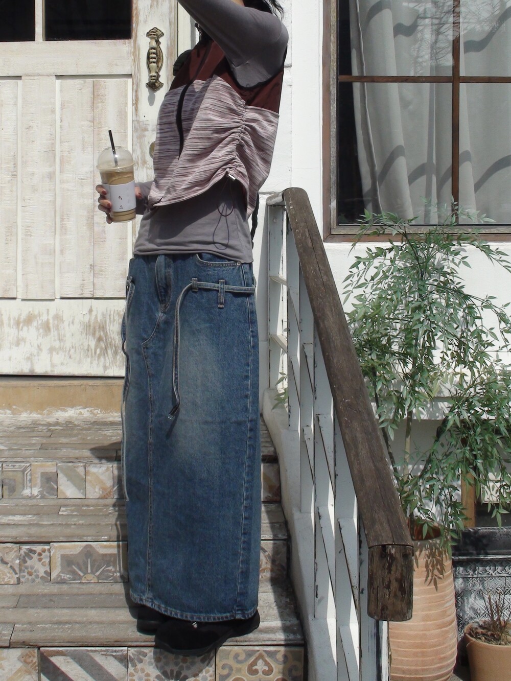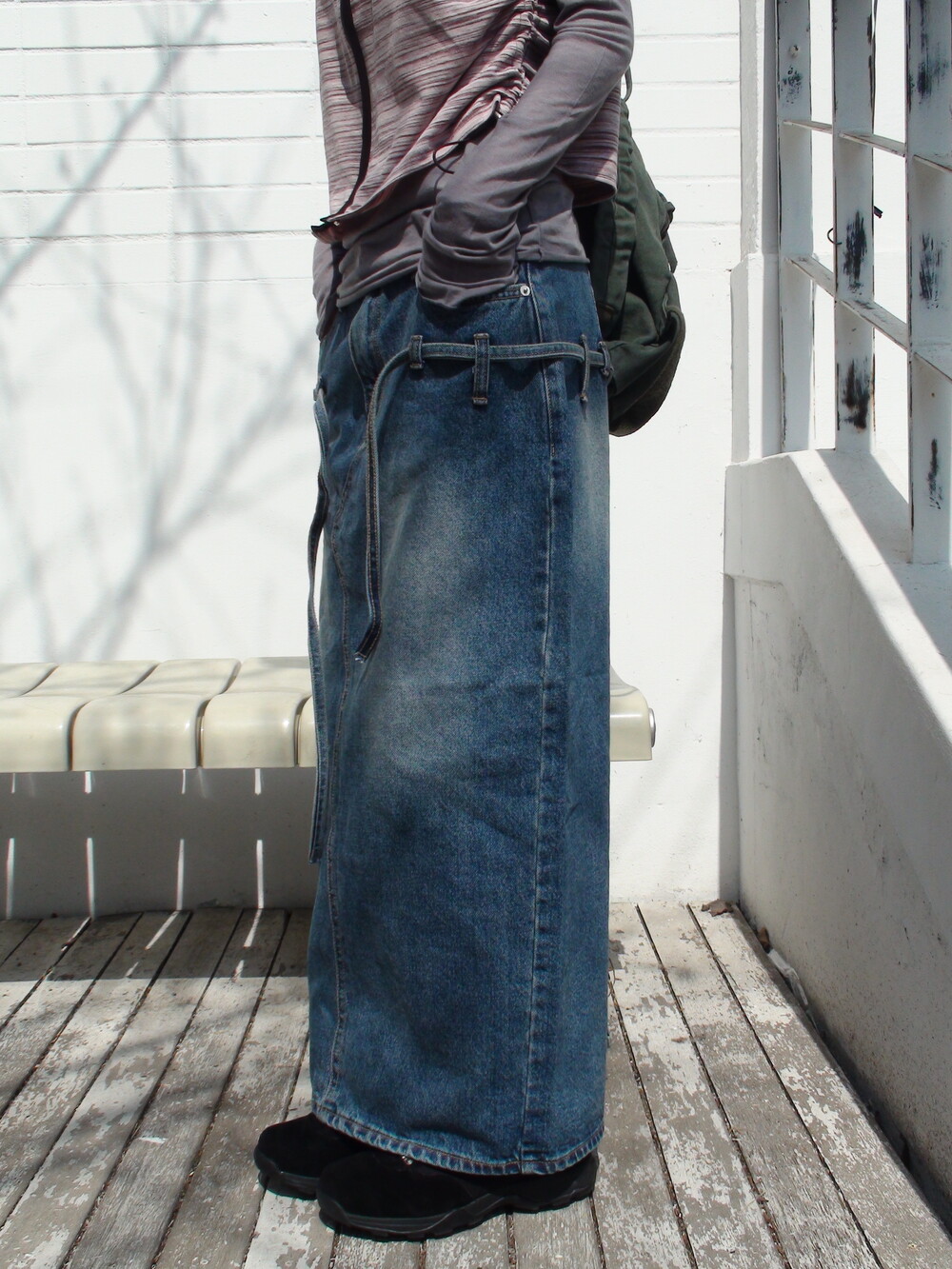 탄탄한 데님원단으로 제작되었으며, 기존에 벨트라인이 아닌 포켓 밑 부분에 스트랩끈을 디테일을 사용하여 디자인적인 면에서 유니크함이 돋보이는 제품입니다.