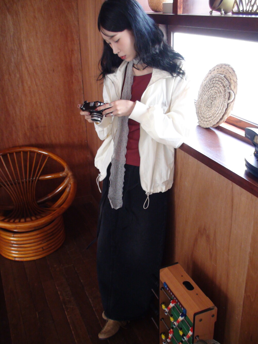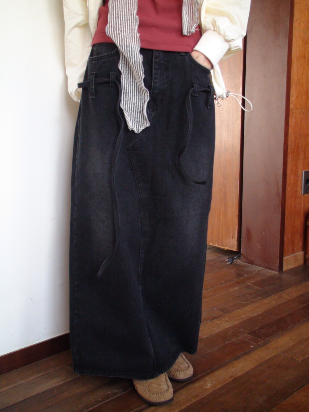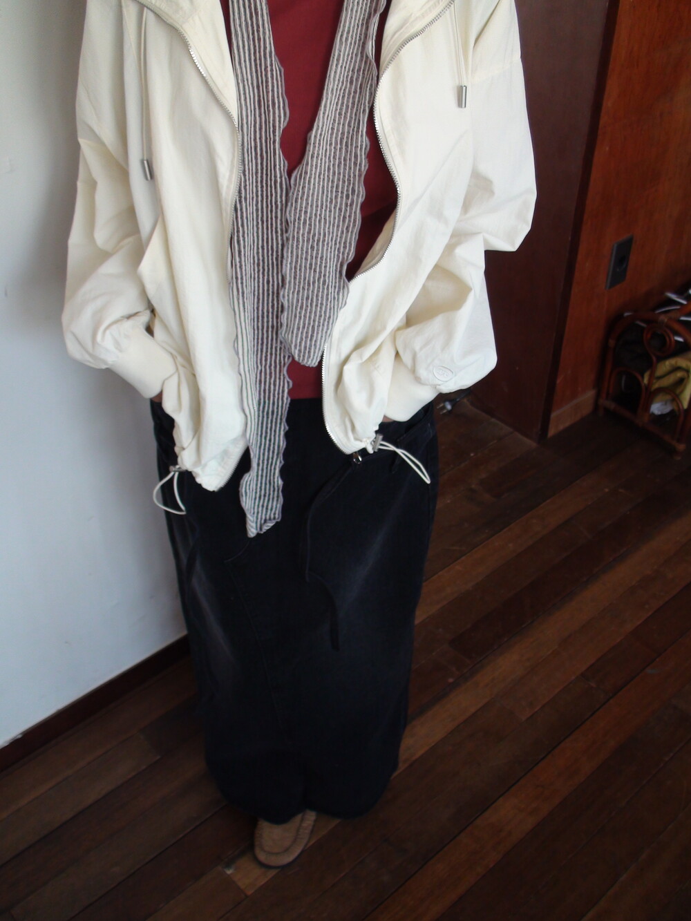 H라인 핏감으로 맥시하게 떨어지는 기장감이 하체보정에도 효과적입니다.