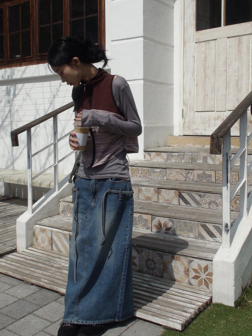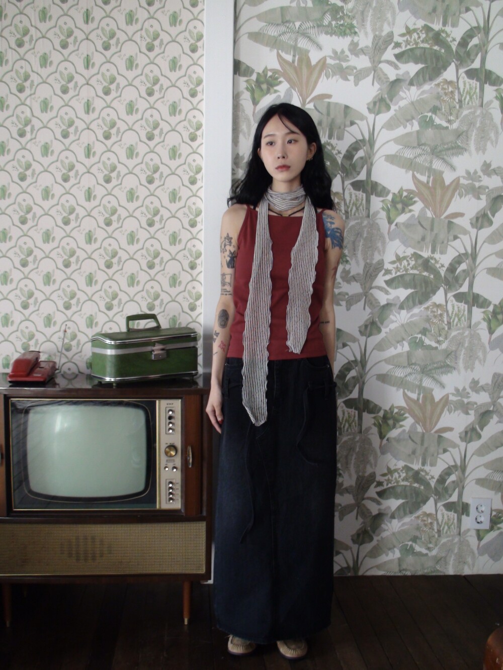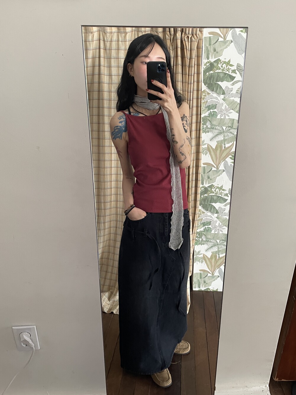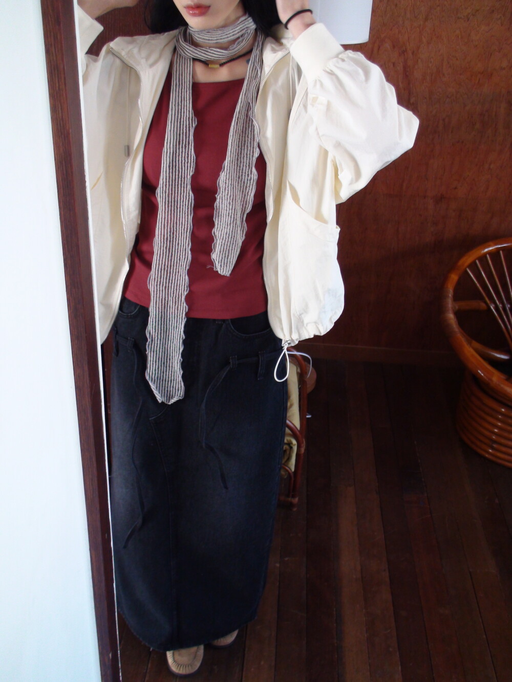 H라인 핏감으로 맥시하게 떨어지는 기장감이 하체보정에도 효과적입니다.