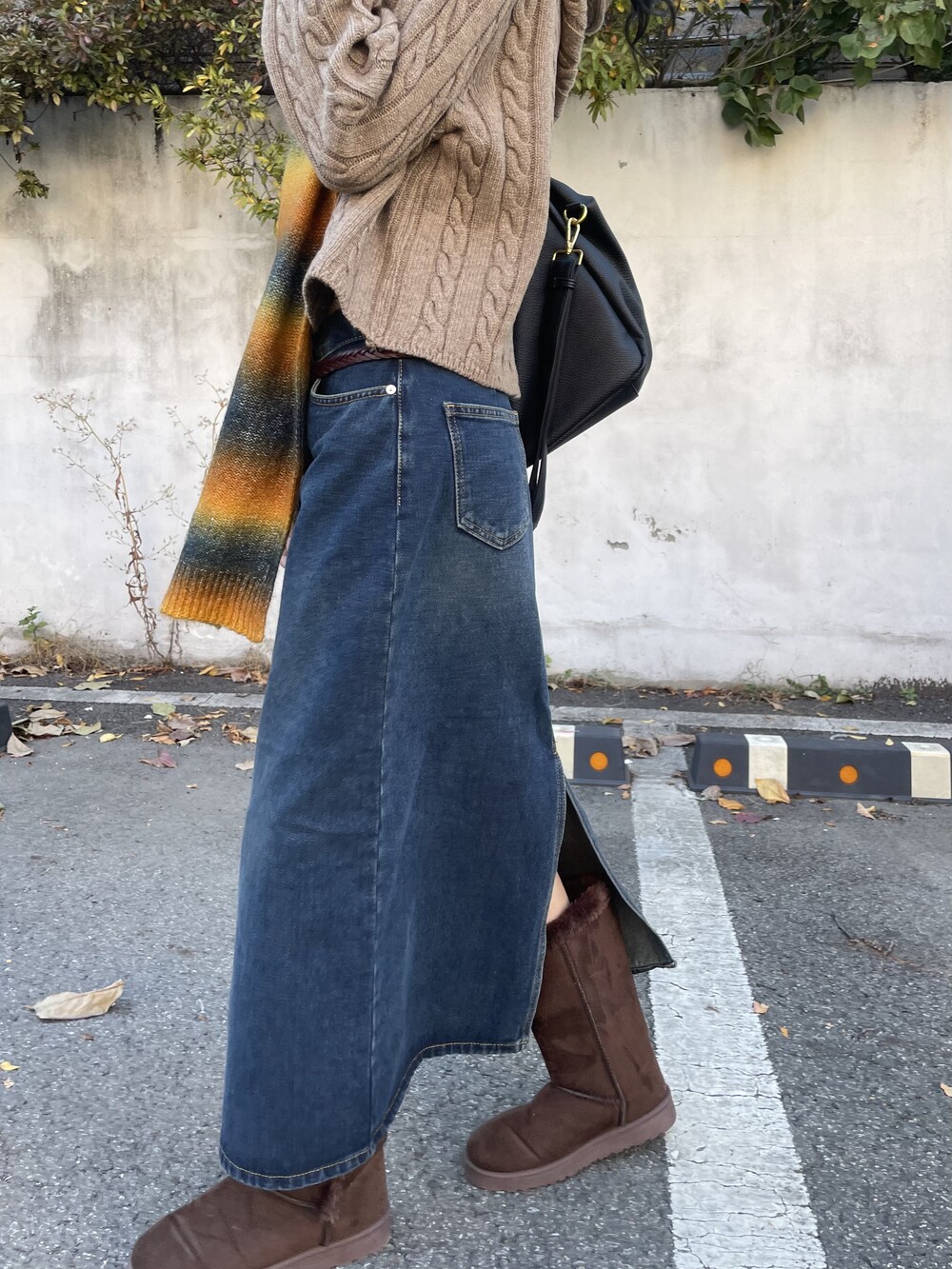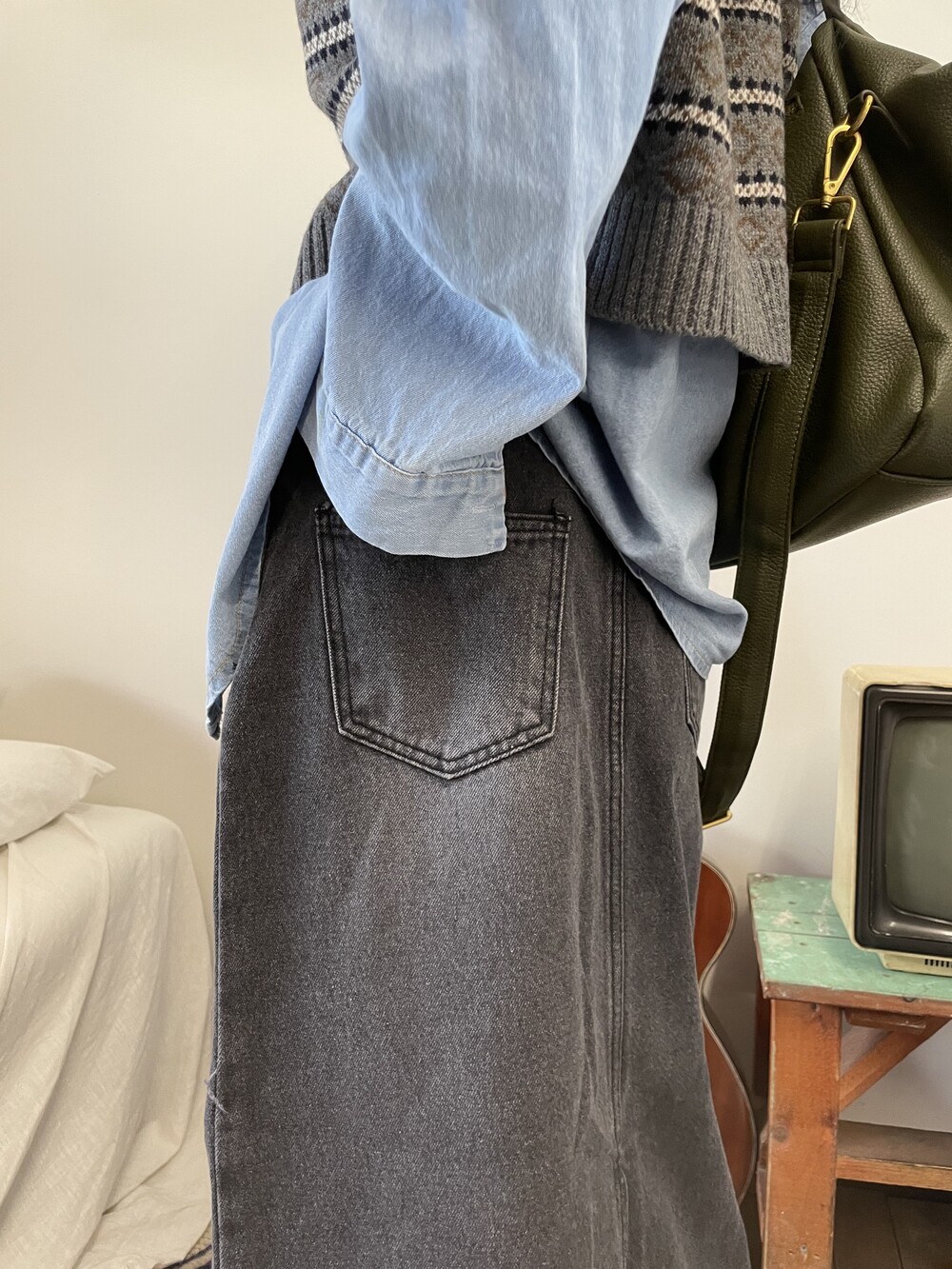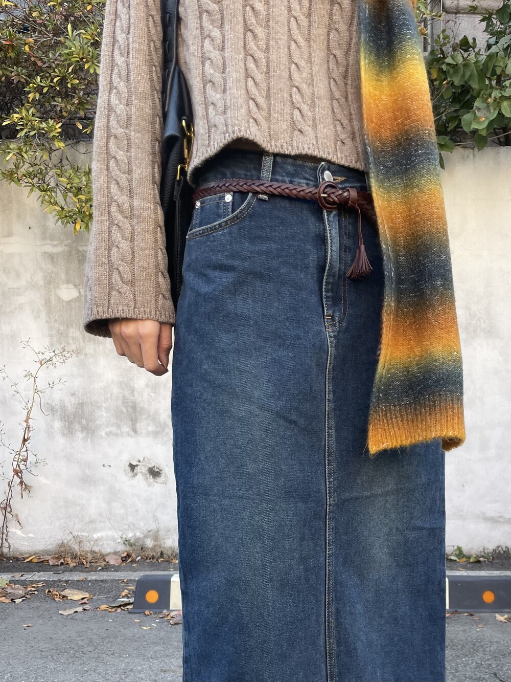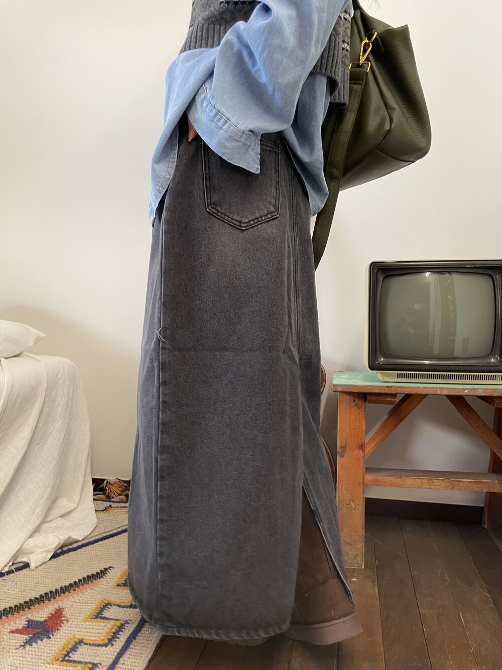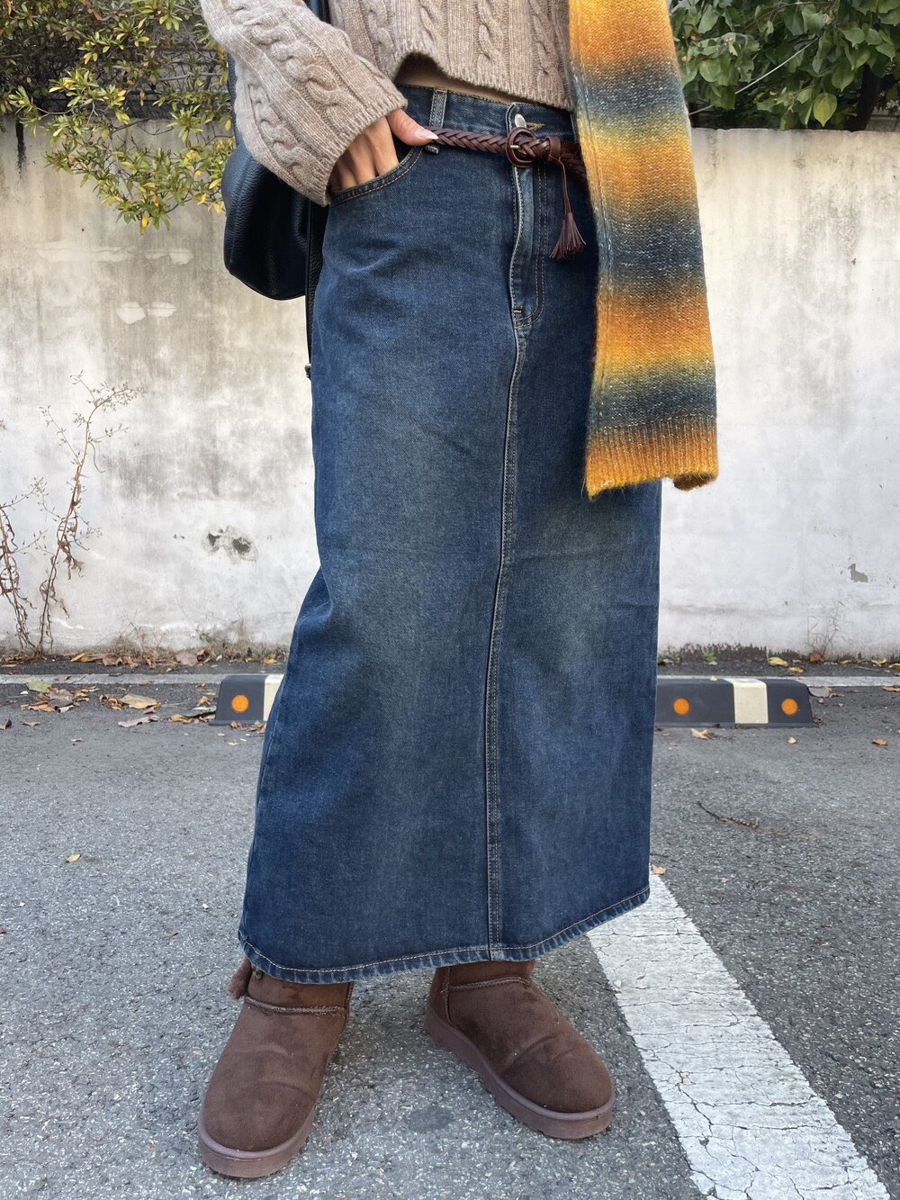 은은한 워싱감이 매력적인 탄탄한 데님 스커트 제품입니다.