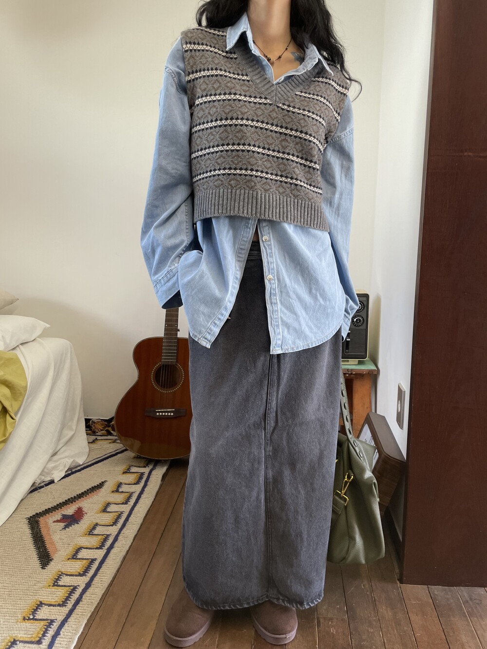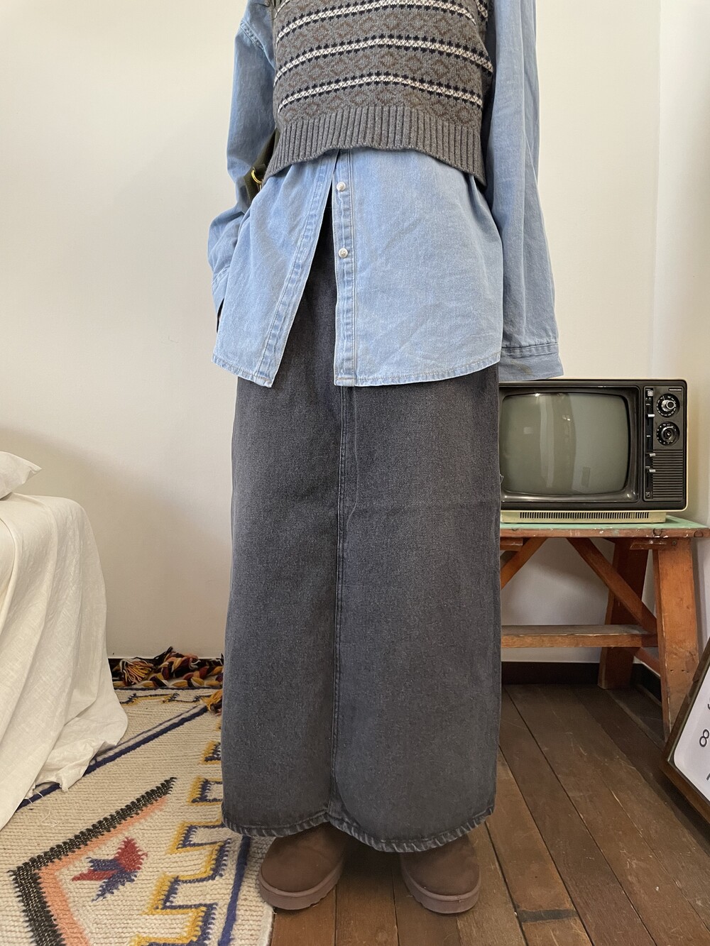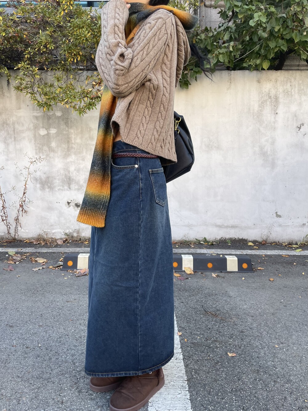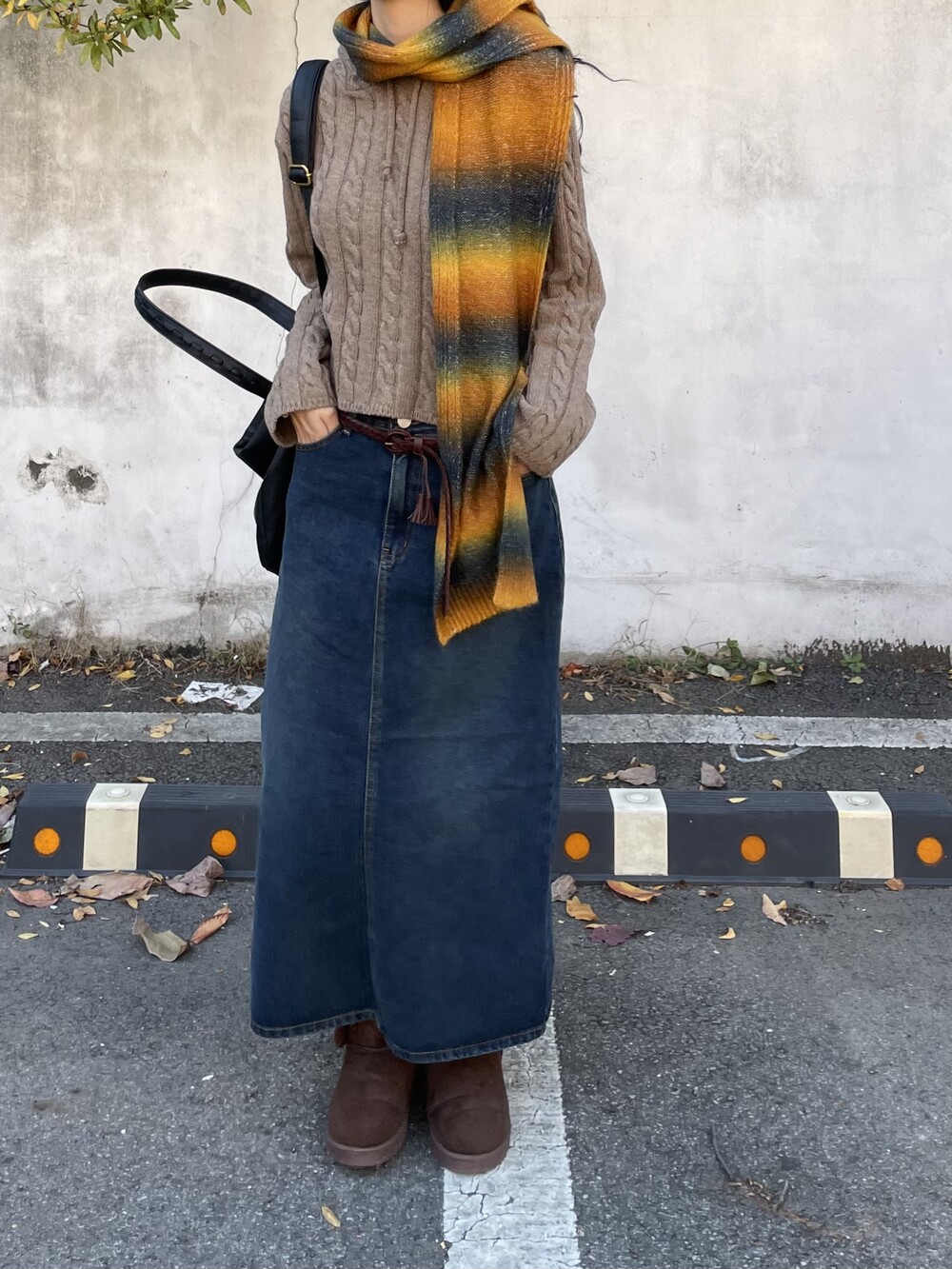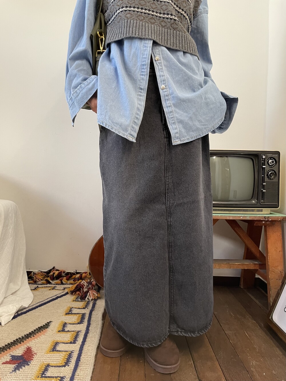 은은한 워싱감이 매력적인 탄탄한 데님 스커트 제품입니다.