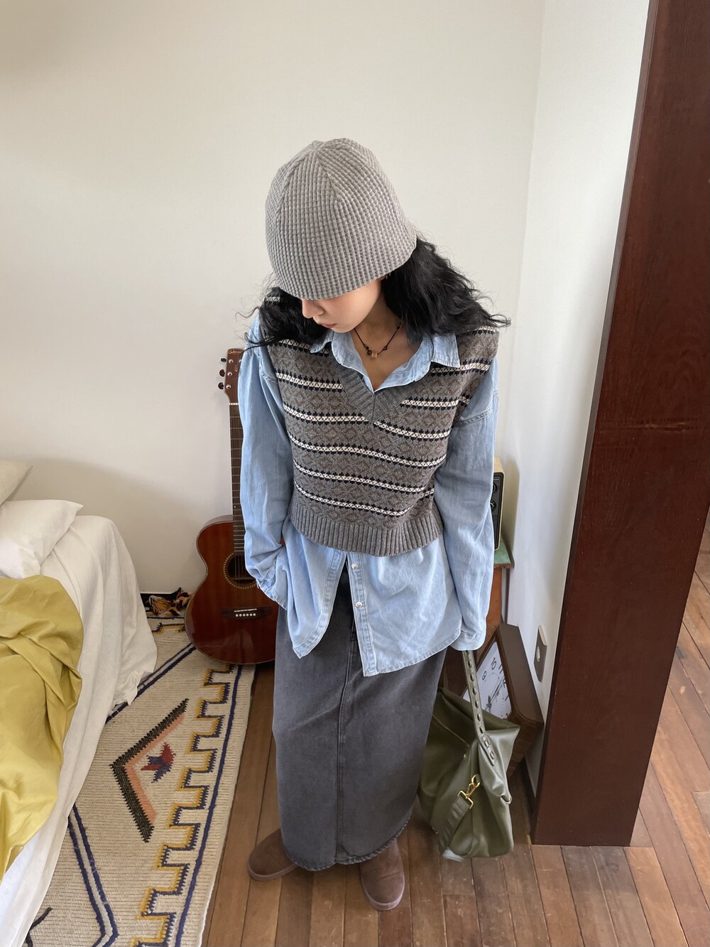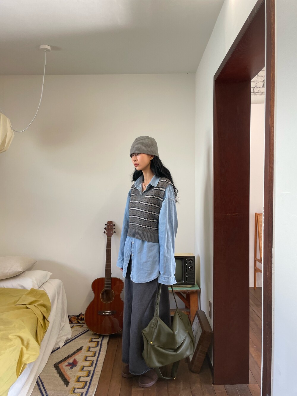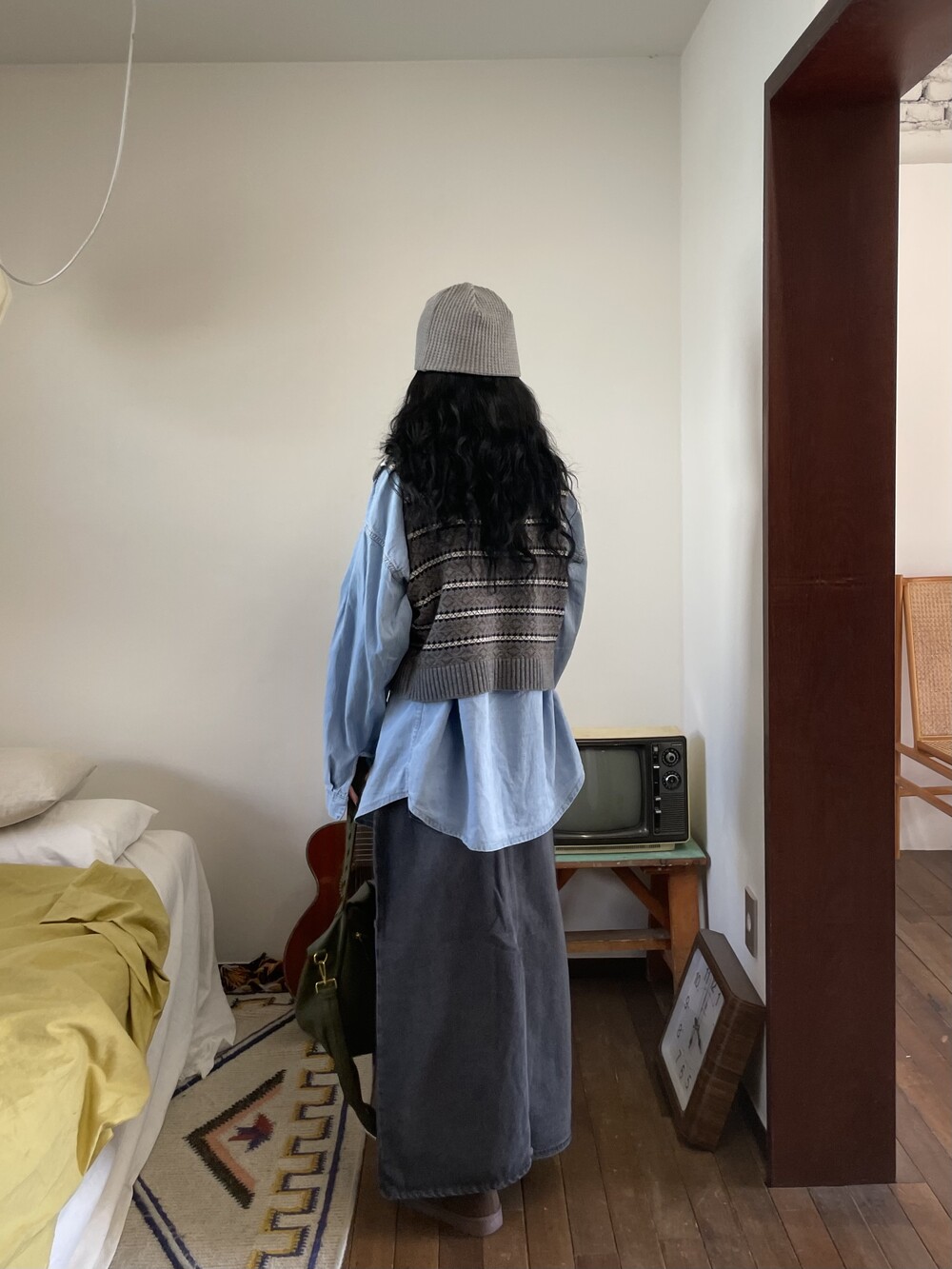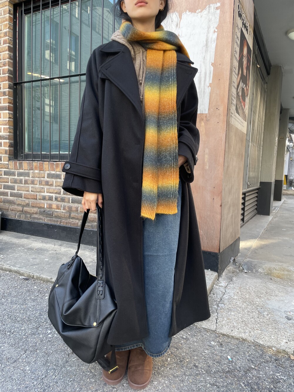 백라인에 딥한 밑단 트임으로 편안한 활동성을 더해주었으며, 부츠 또는 어그슈즈와의 조합이 훌륭합니다.