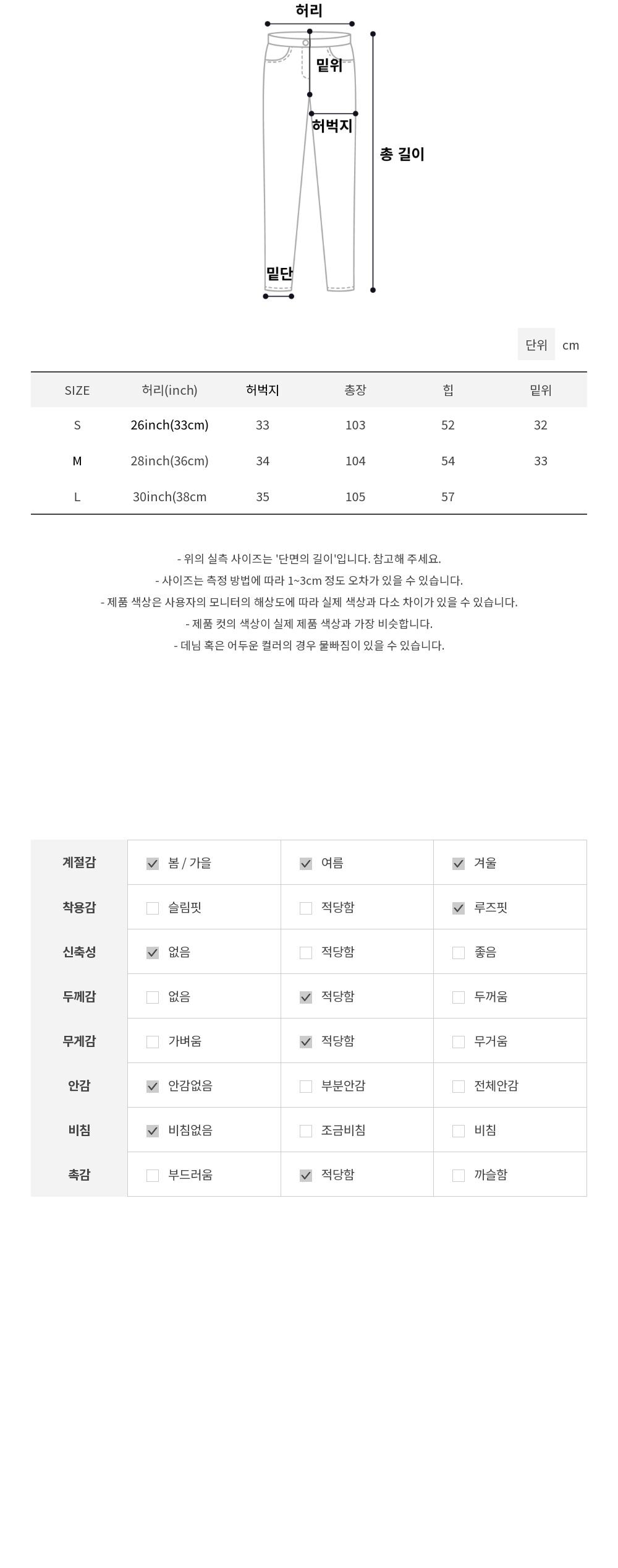 - 촬영 환경과 해상도에 따라 제품 색상이 달라보일 수 있으며, 피팅샷이 실물색상과 더 유사합니다.