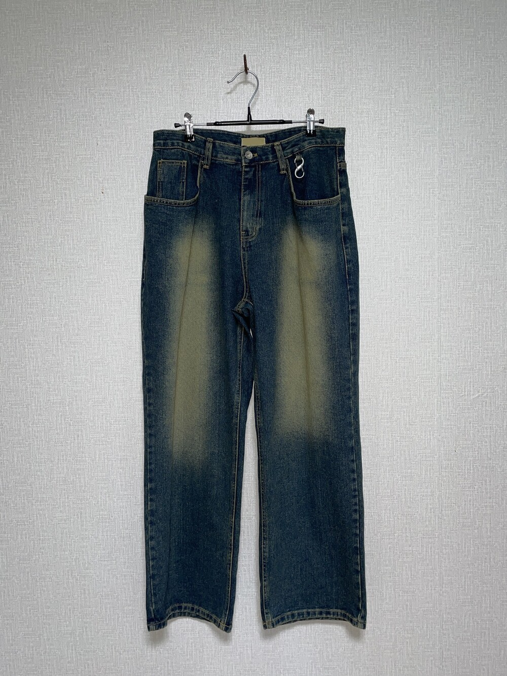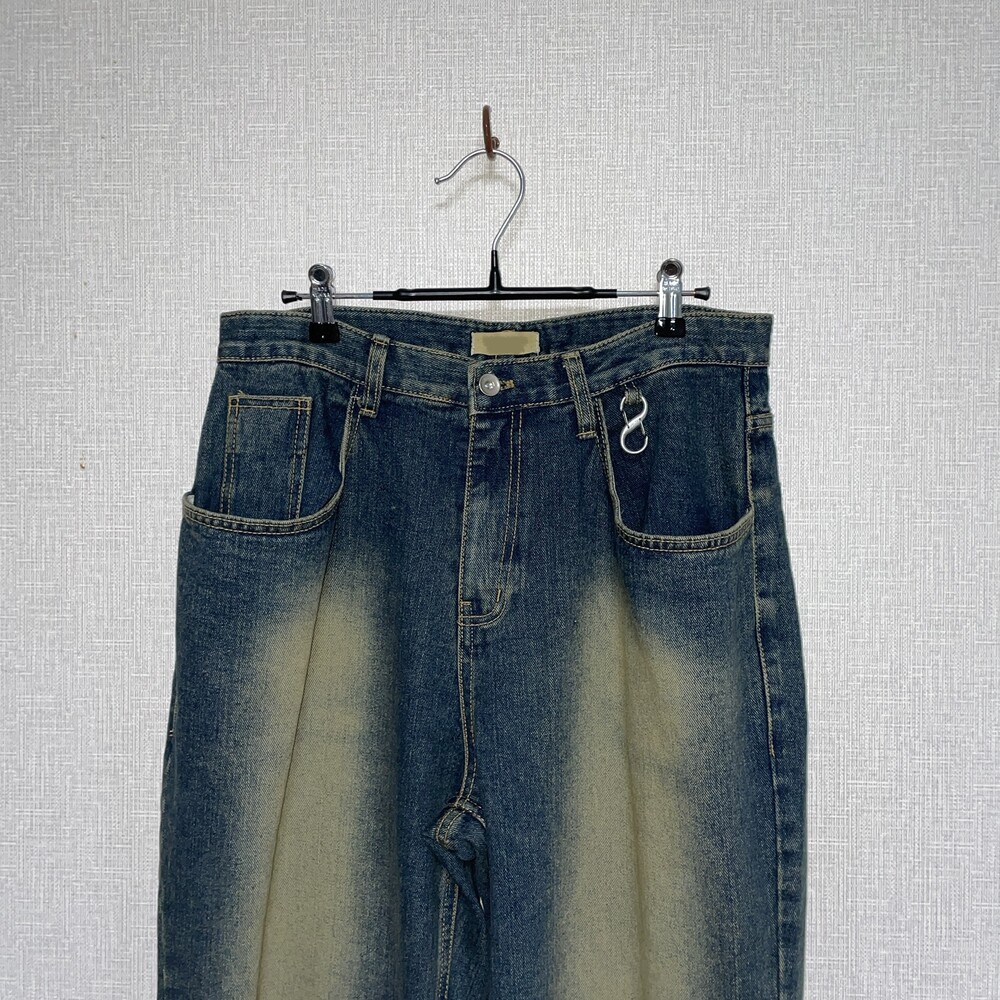 특수워싱 기법을 사용한 데님원단과 키링이 옵션으로 구성되어 빈티지한 무드가 물씬 느껴지는 데님팬츠 제품입니다.