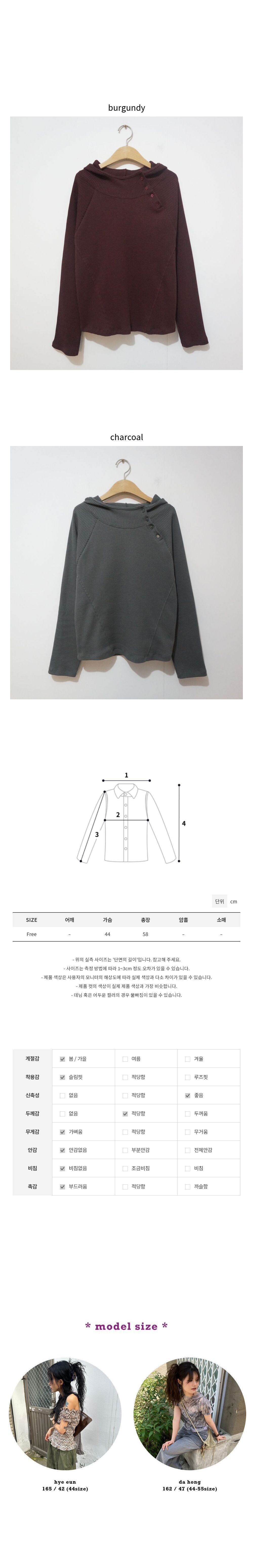 크로스 버튼 와플후디(burgundy/charcoal)