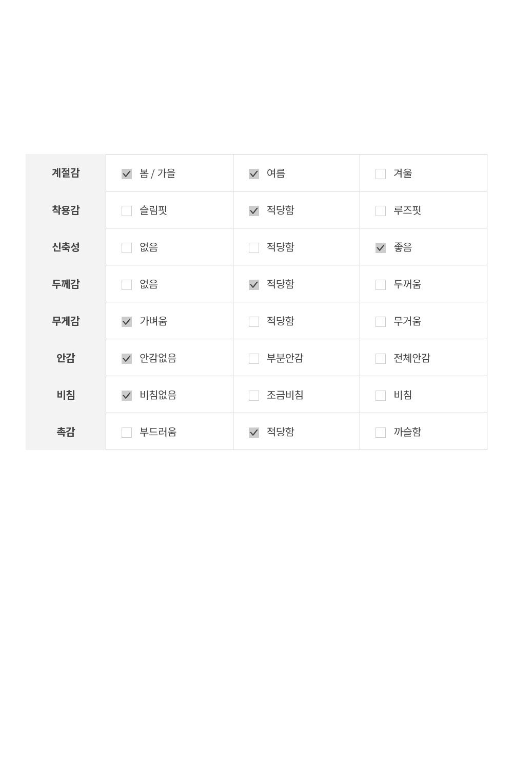 - 세탁방법 : 드라이클리닝을 권장합니다.