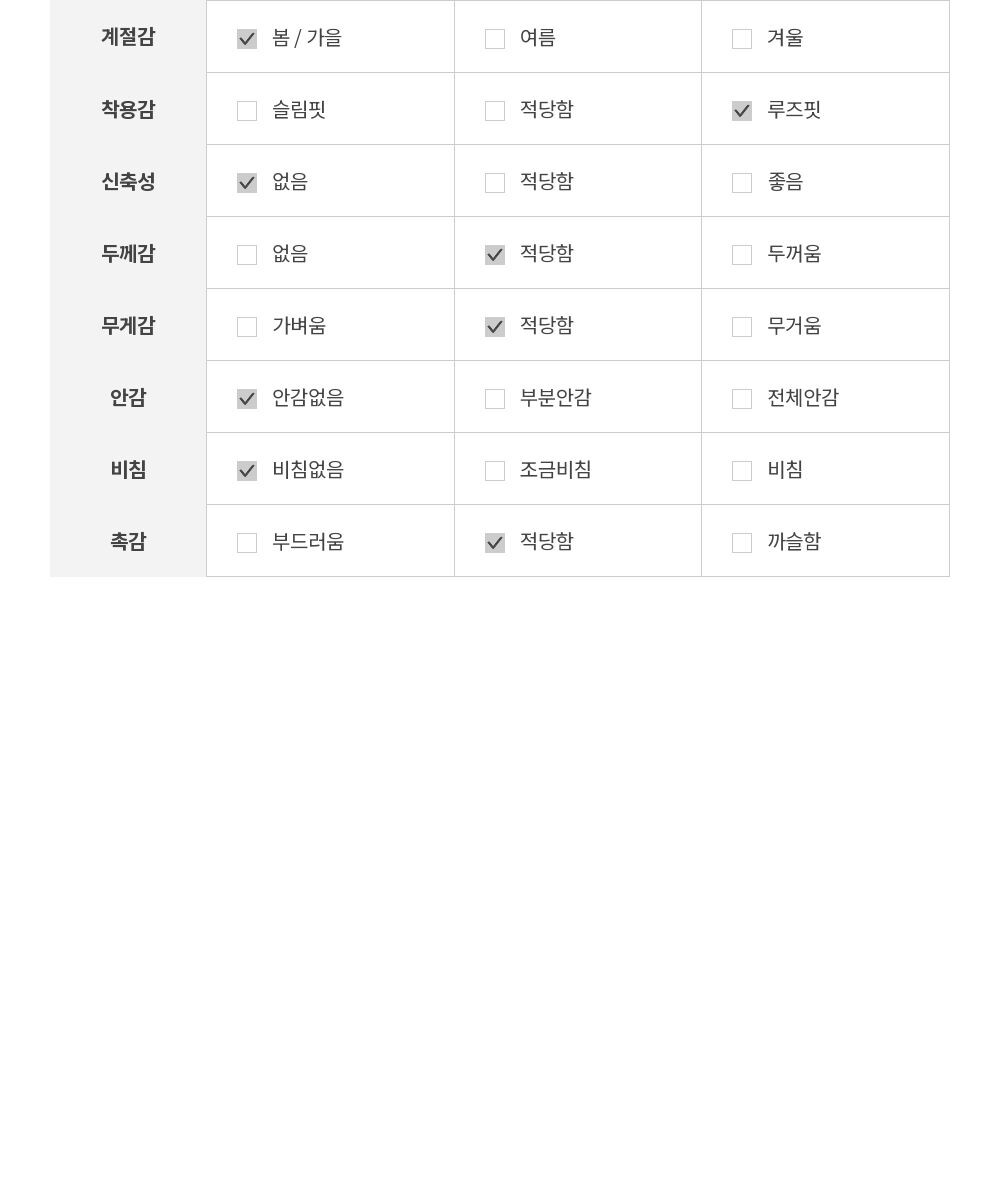 - 세탁방법 : 드라이클리닝을 권장합니다.