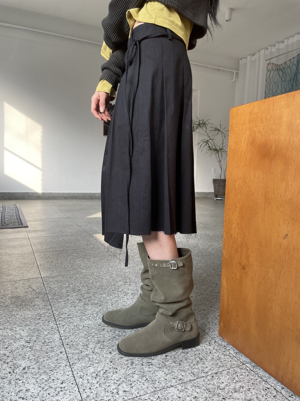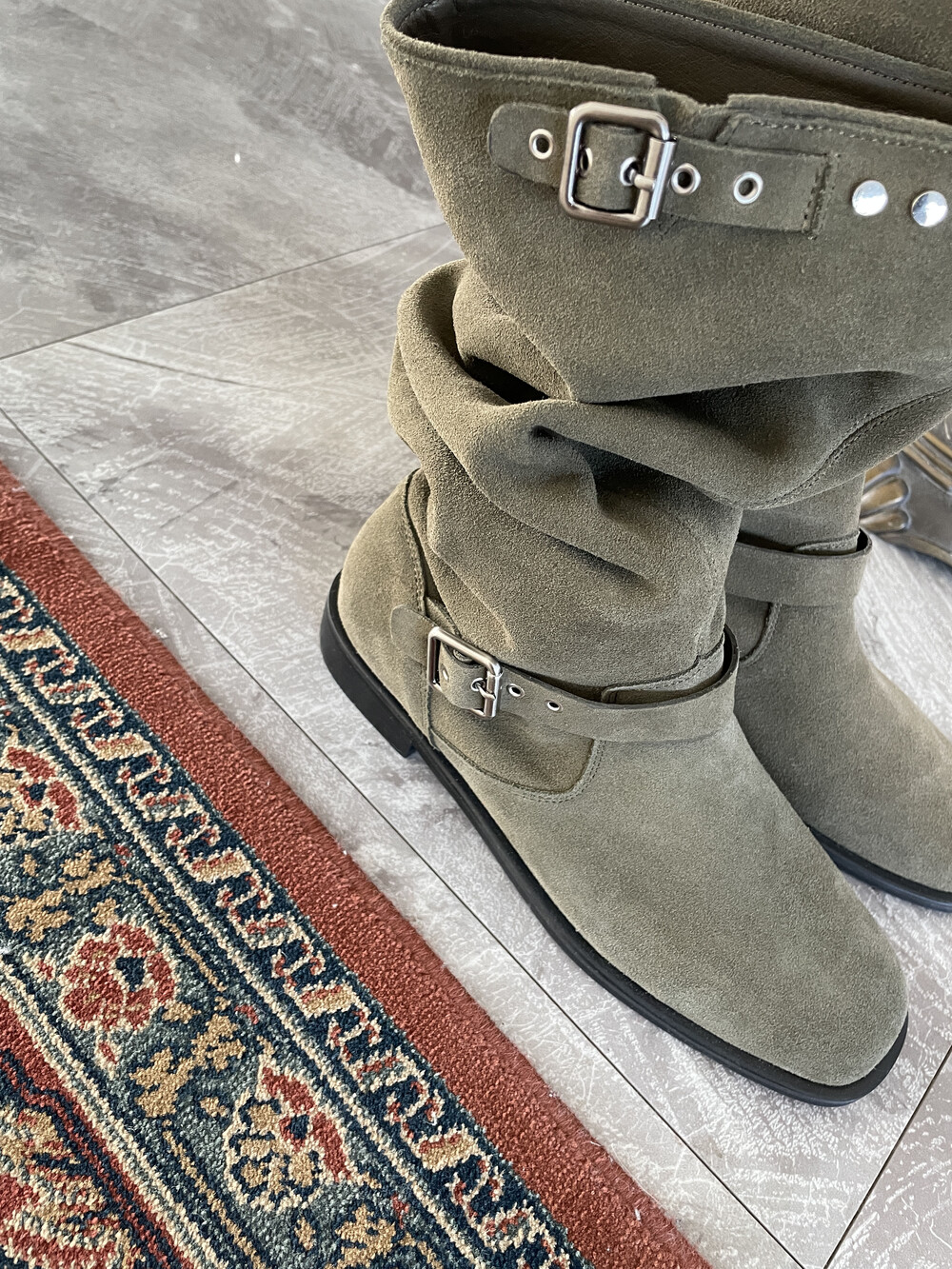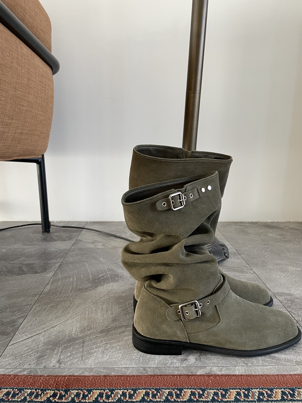 스웨이드 레더 특성상 시간이 지날수록 부드러워져 더욱 자연스레 주름지는 실루엣이 돋보이는 부츠입니다.