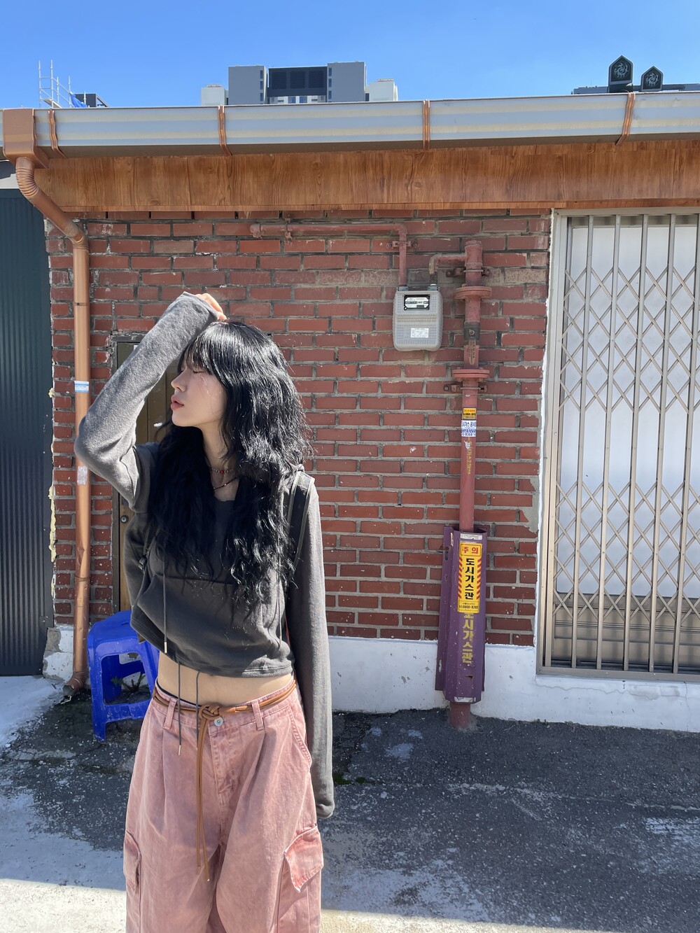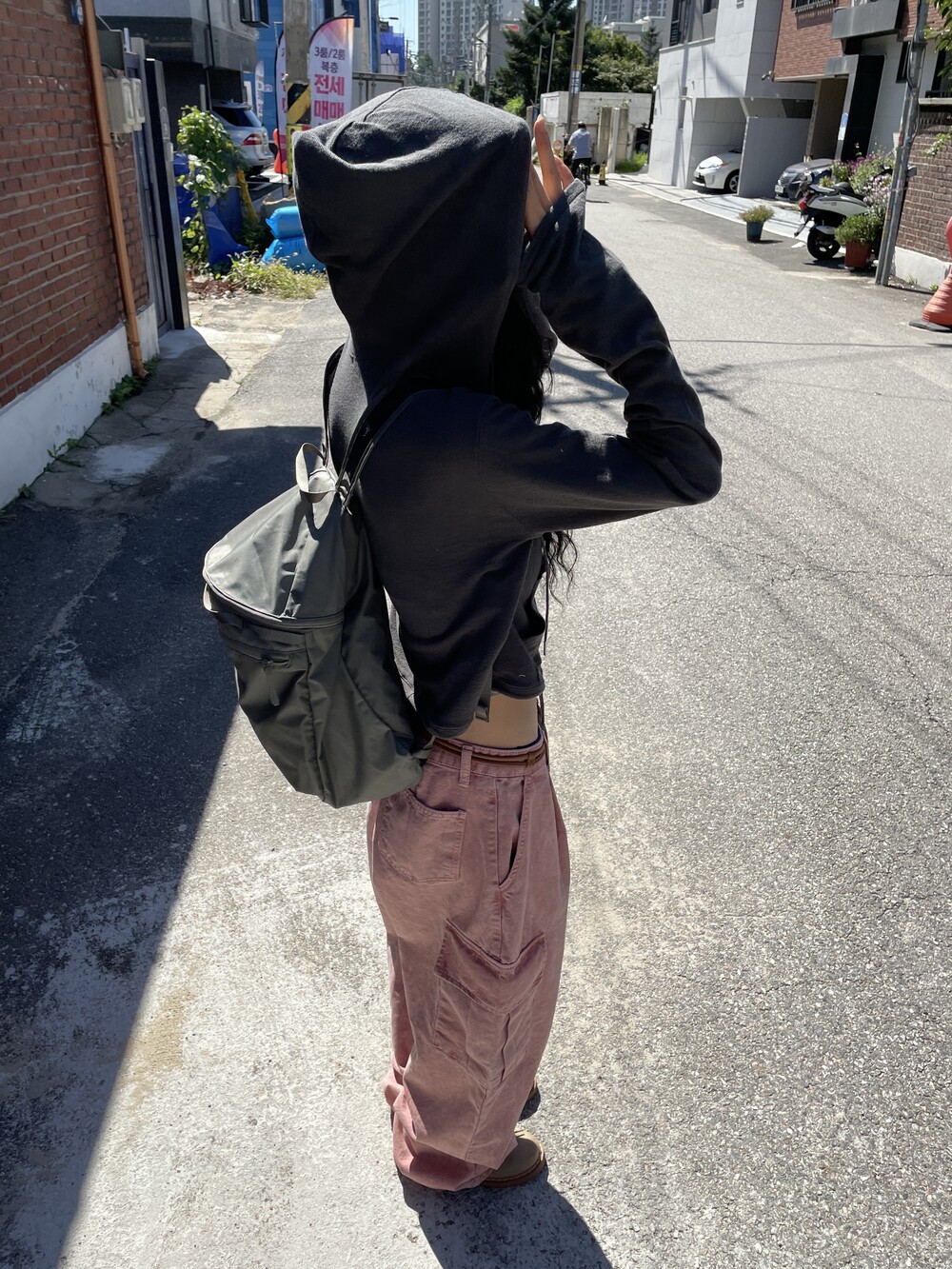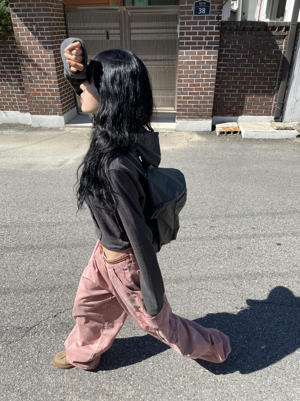 허리가 꽤나 넉넉한 유니섹스 제품으로 착용하실때 허리가 너무 큰게 부담스러우시다면 저처럼 사이드 벨트고리를 이용해 랩 팬츠 같이 착용해주셔도 좋고, 다양한 벨트 제품으로 각각의 무드를 만들어보시는 것 도 좋으실 것 같아요 !