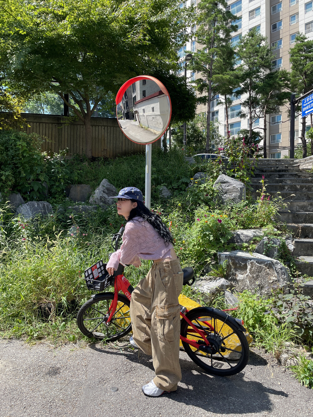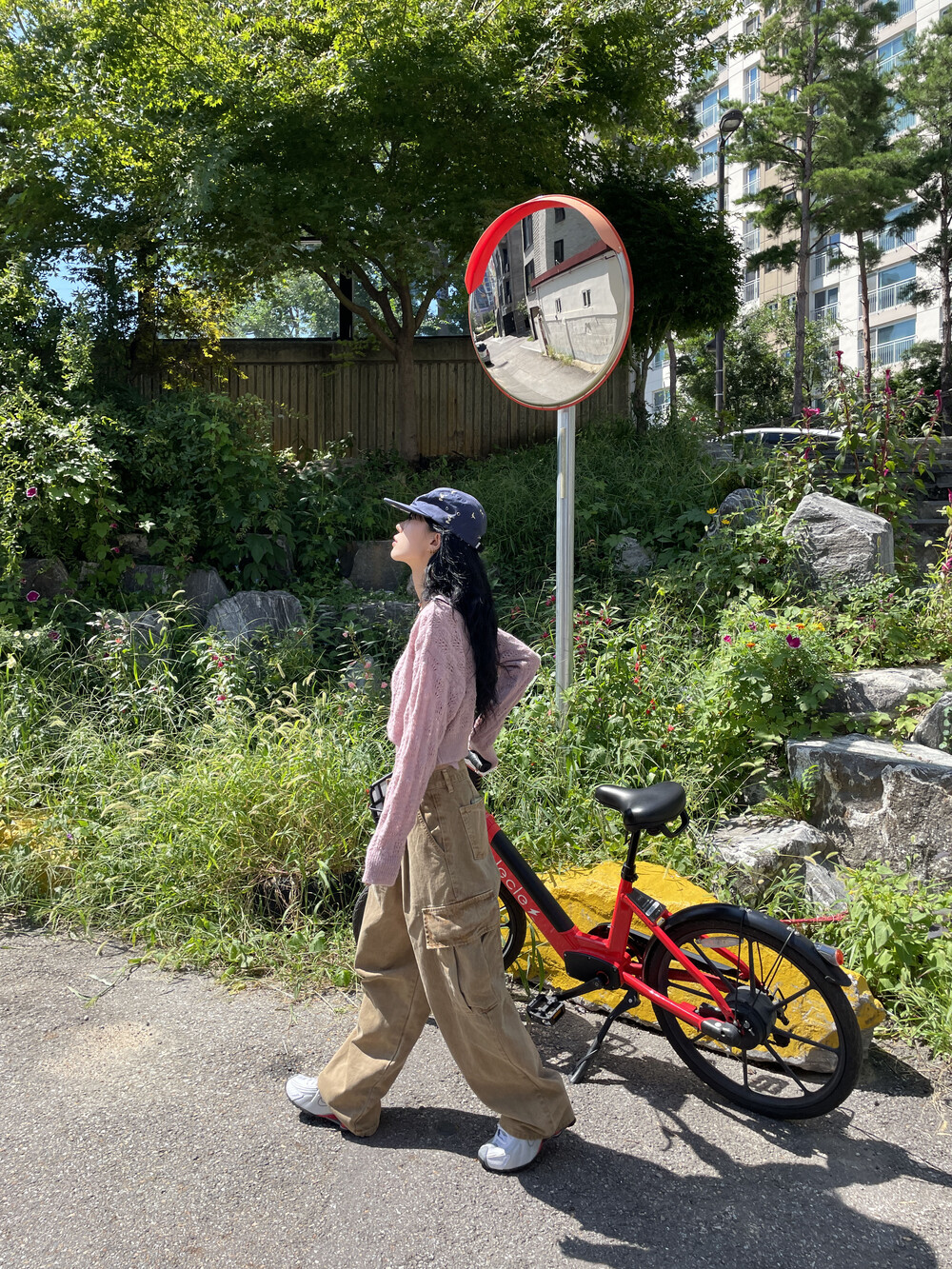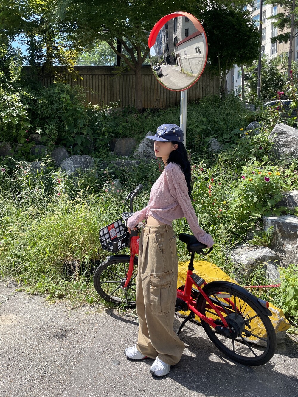 허리가 꽤나 넉넉한 유니섹스 제품으로 착용하실때 허리가 너무 큰게 부담스러우시다면 저처럼 사이드 벨트고리를 이용해 랩 팬츠 같이 착용해주셔도 좋고, 다양한 벨트 제품으로 각각의 무드를 만들어보시는 것 도 좋으실 것 같아요 !
