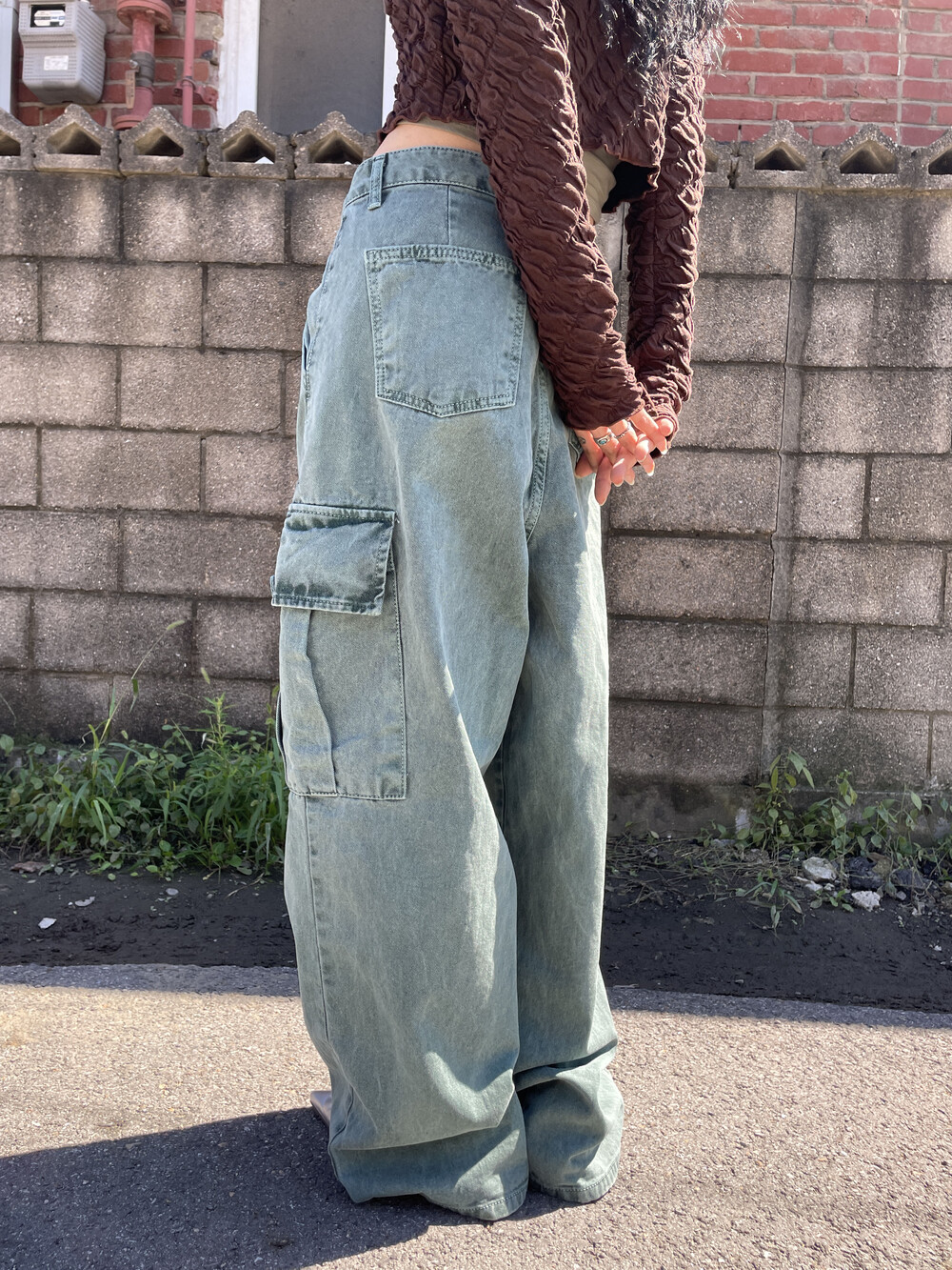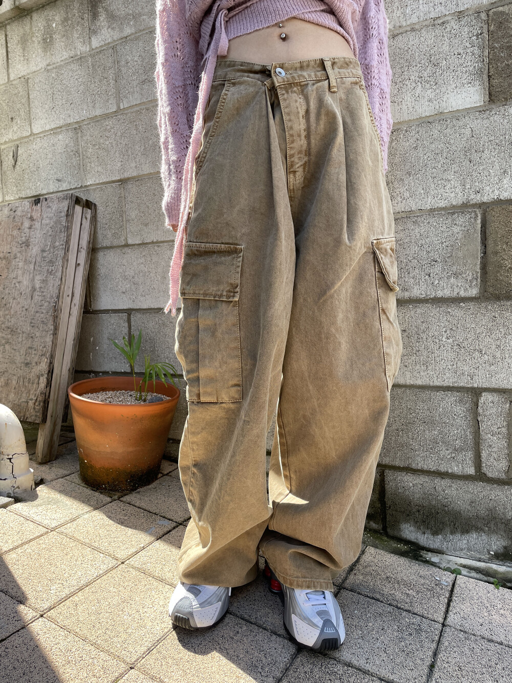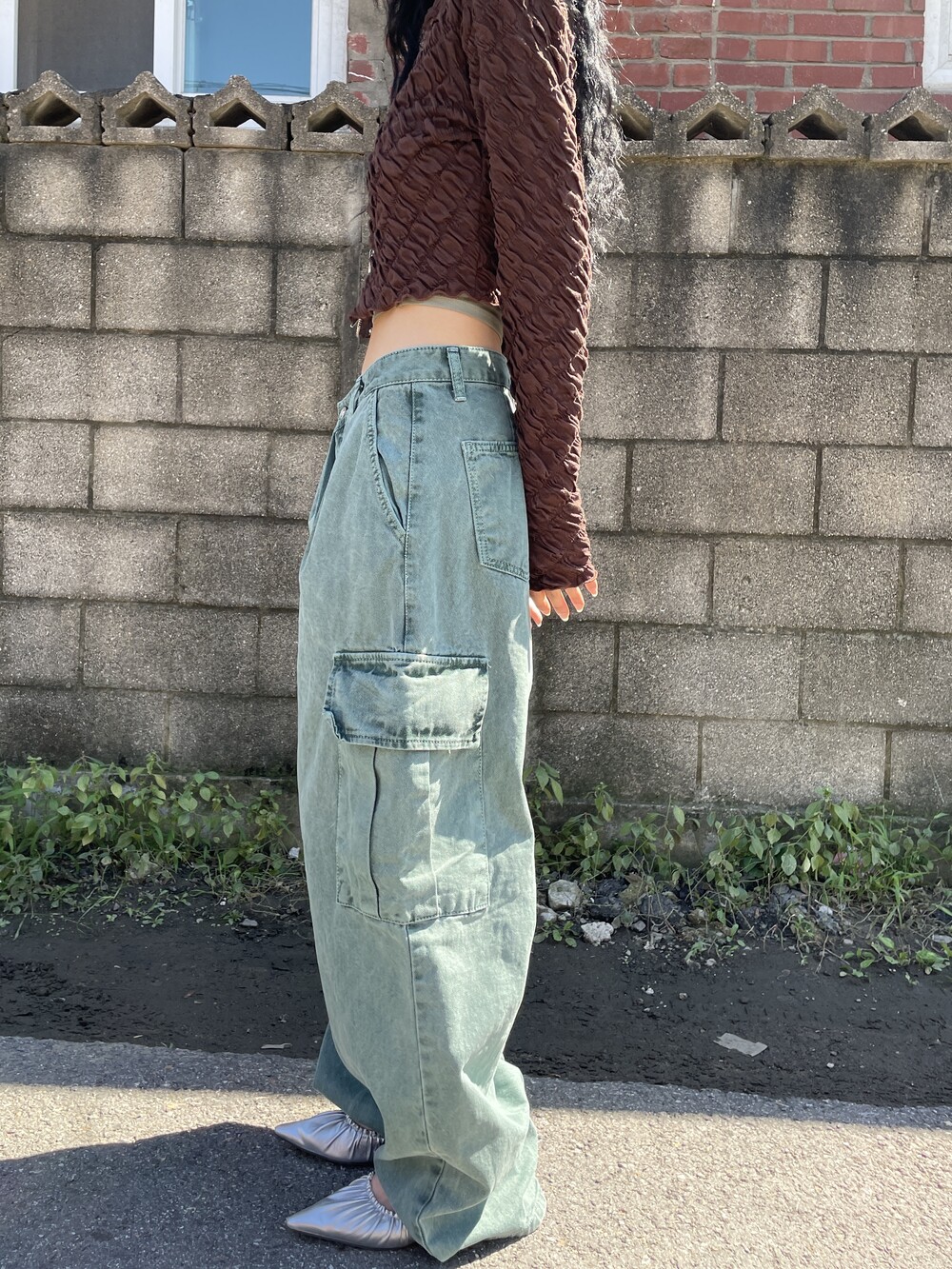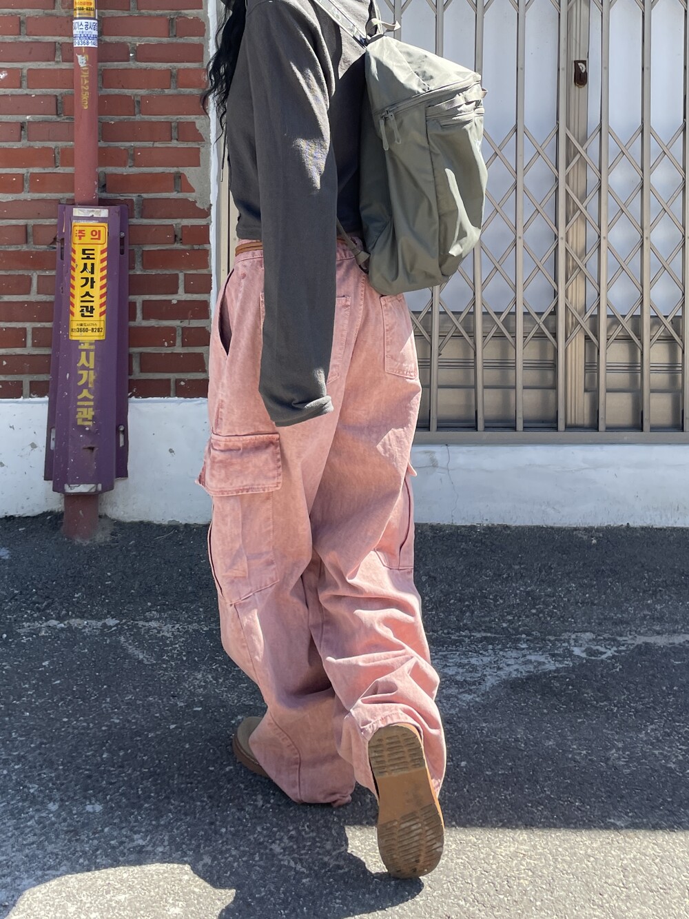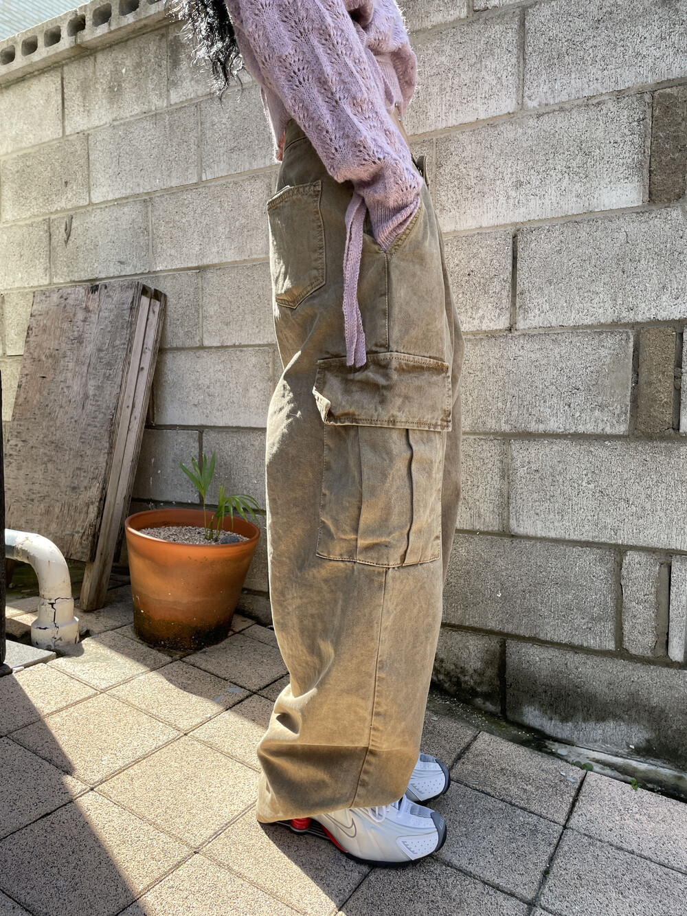 베이직한 카고 디자인에 물빠진 색감으로 은은한 포인트가 되어빈티지한 느낌이 더욱 느껴졌던 팬츠인 만큼