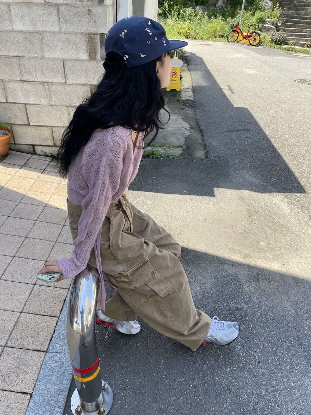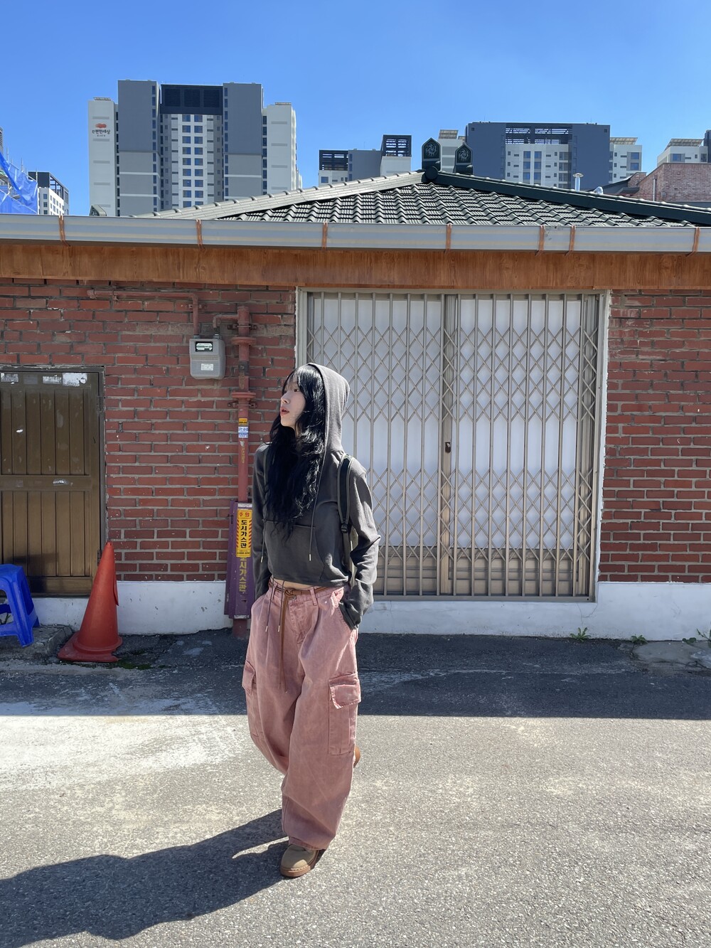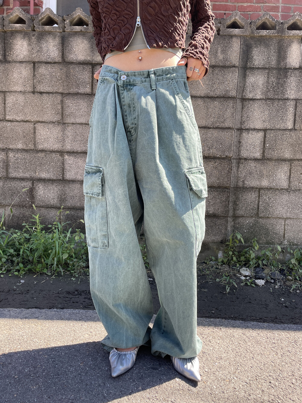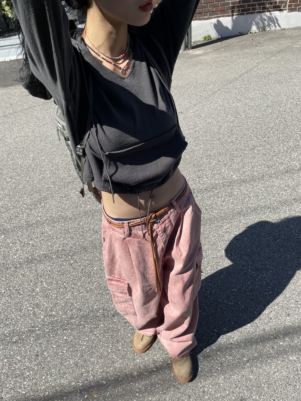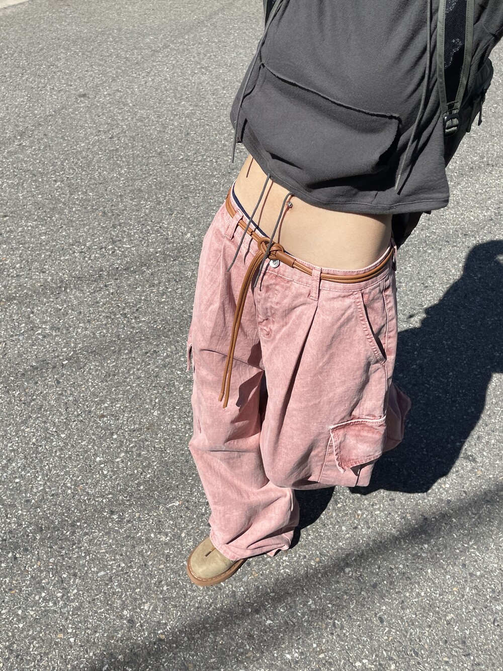 베이직한 카고 디자인에 물빠진 색감으로 은은한 포인트가 되어빈티지한 느낌이 더욱 느껴졌던 팬츠인 만큼