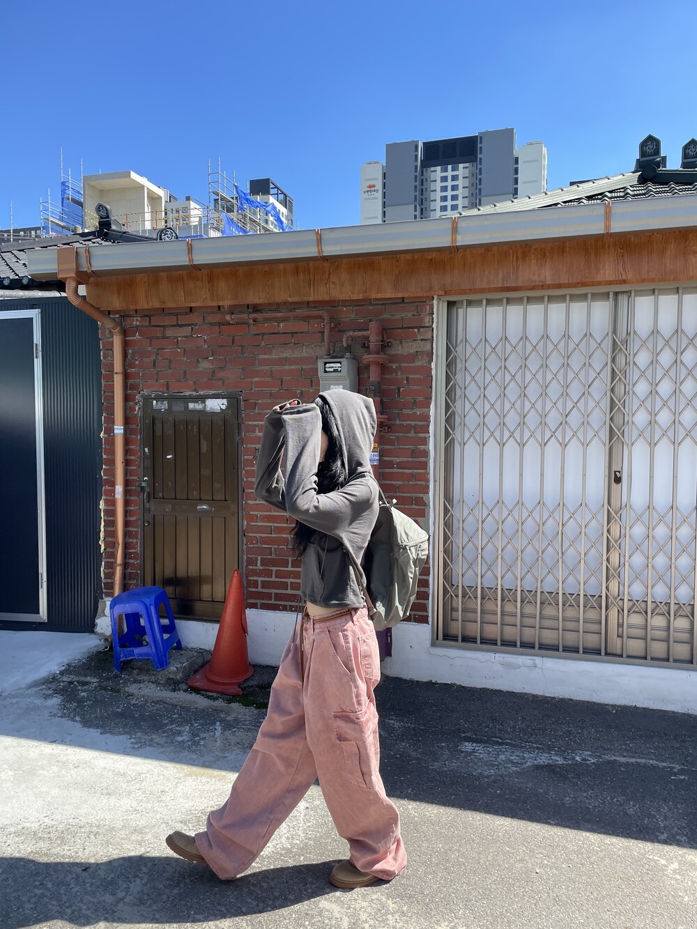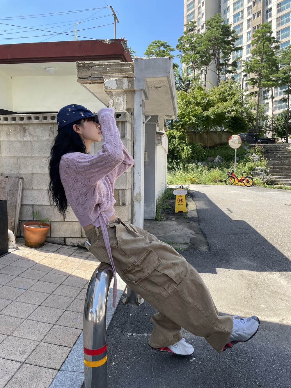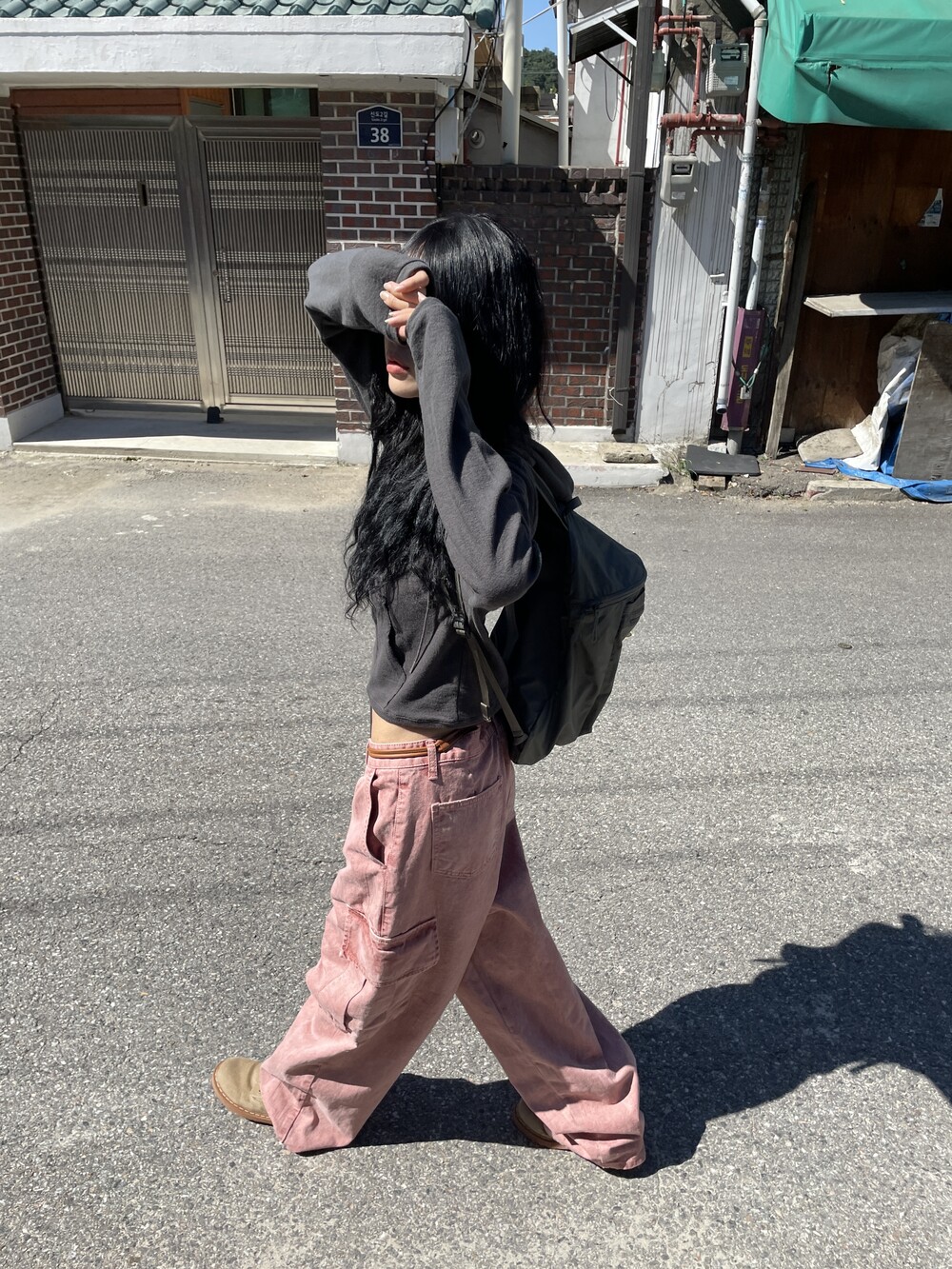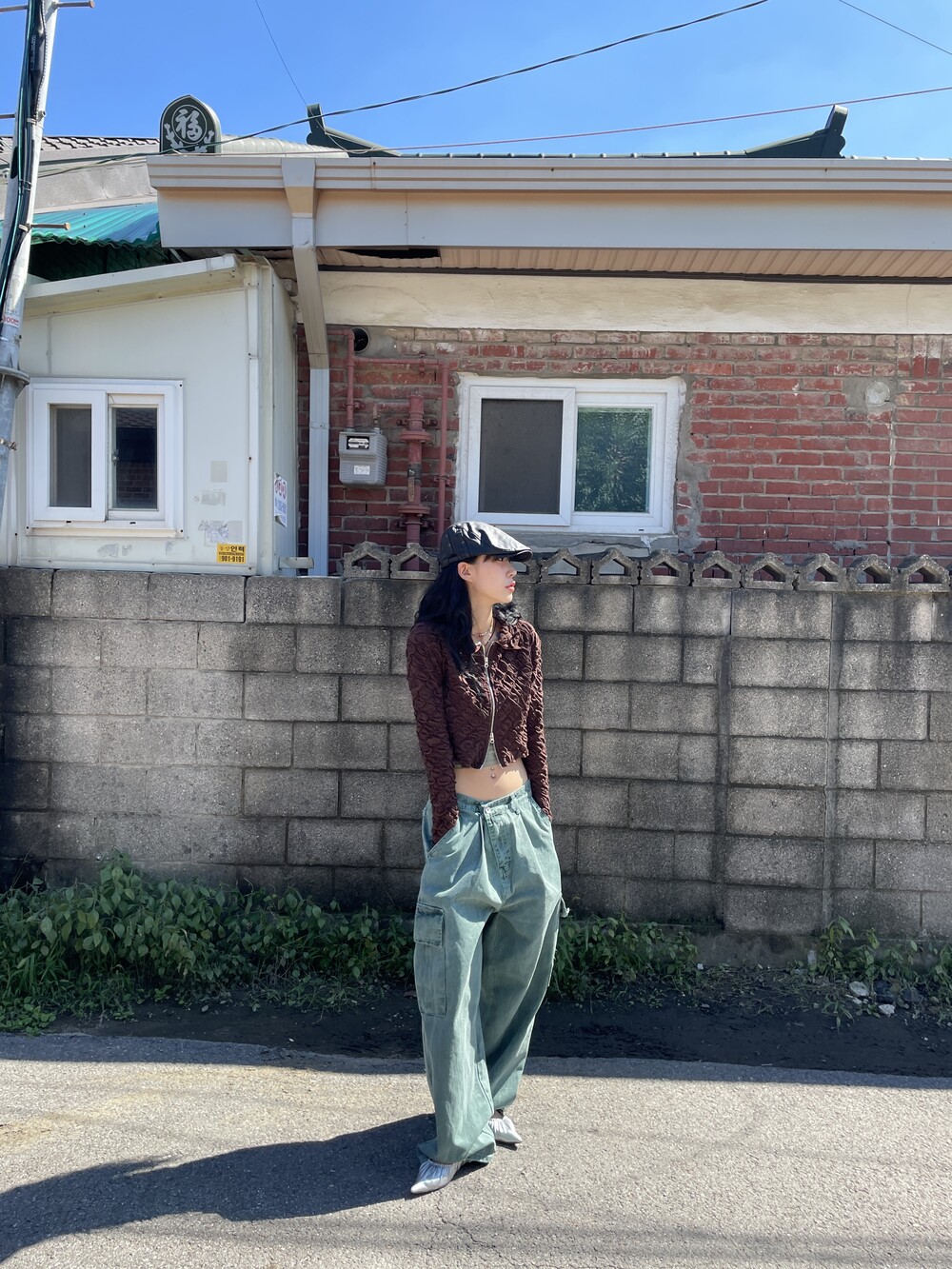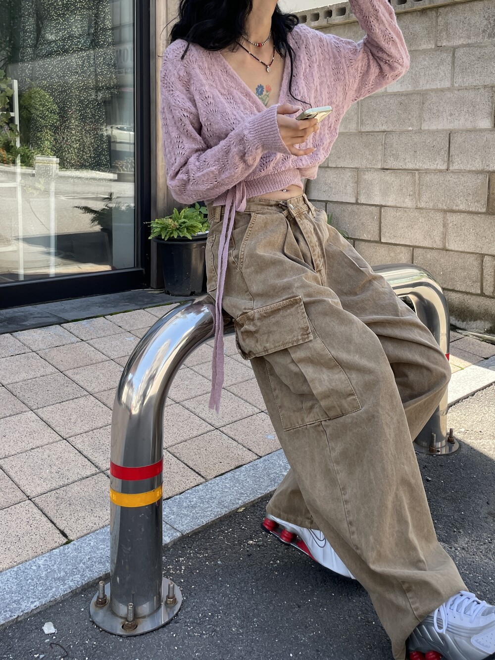 베이직한 카고 디자인에 물빠진 색감으로 은은한 포인트가 되어빈티지한 느낌이 더욱 느껴졌던 팬츠인 만큼