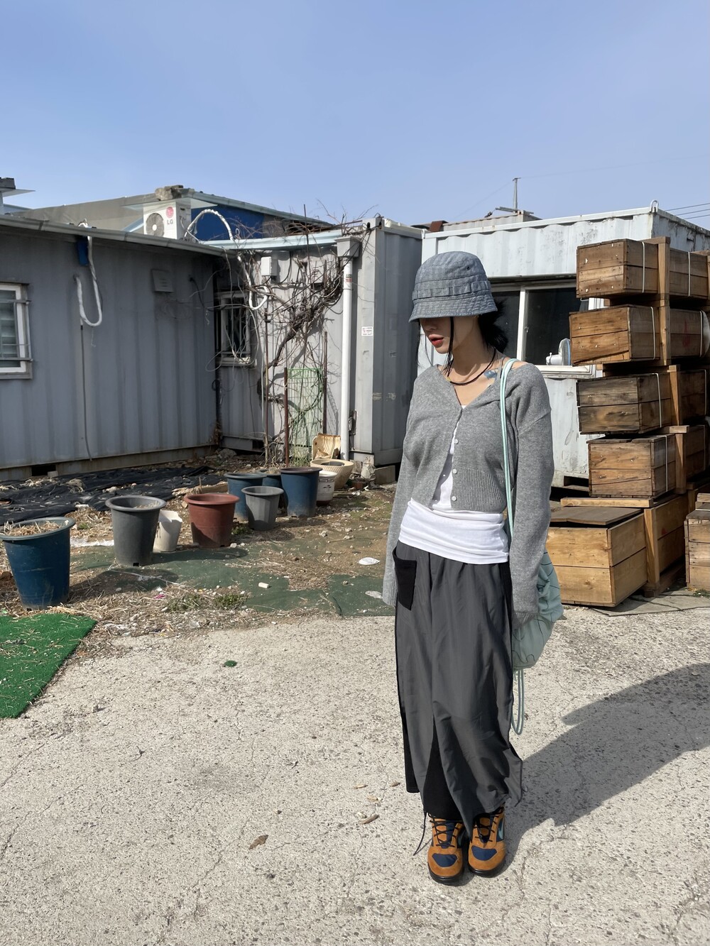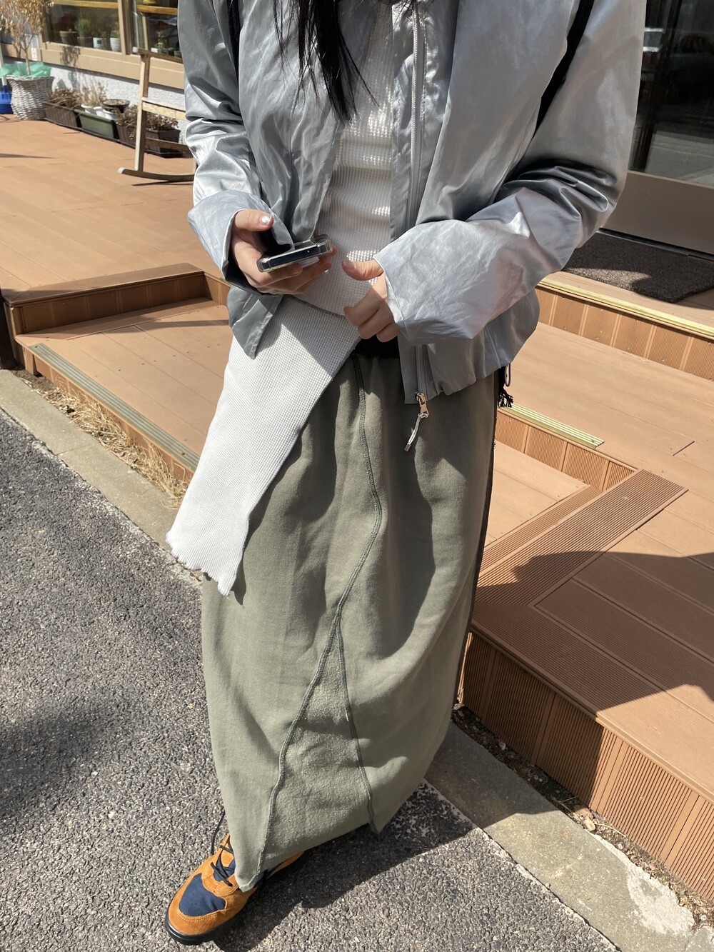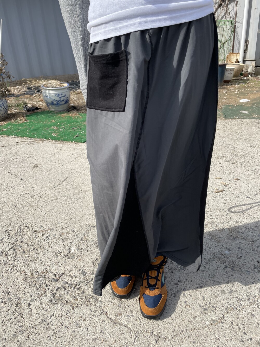 면과 폴리 각각 다른 소재의 배열로 유니크한 매력을 더해주어 코디의 완성도를 높여준 스커트 제품입니다.
