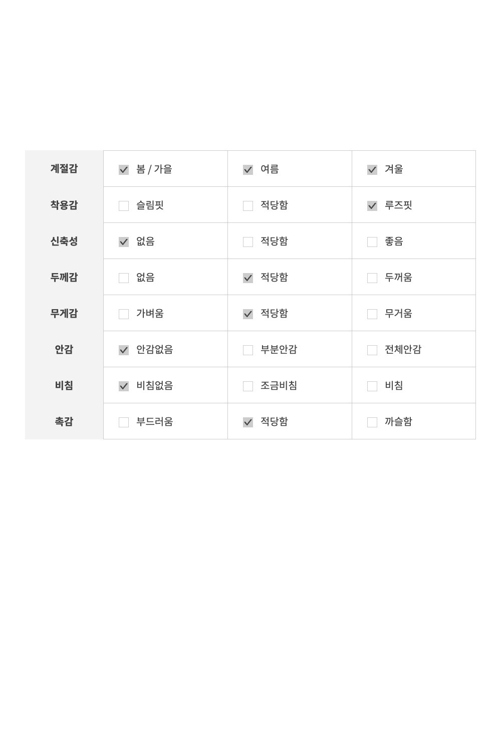 - 세탁방법 : 드라이클리닝을 권장합니다.