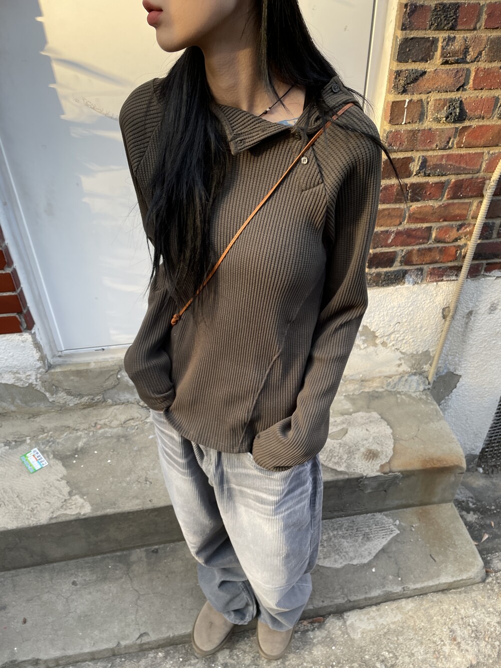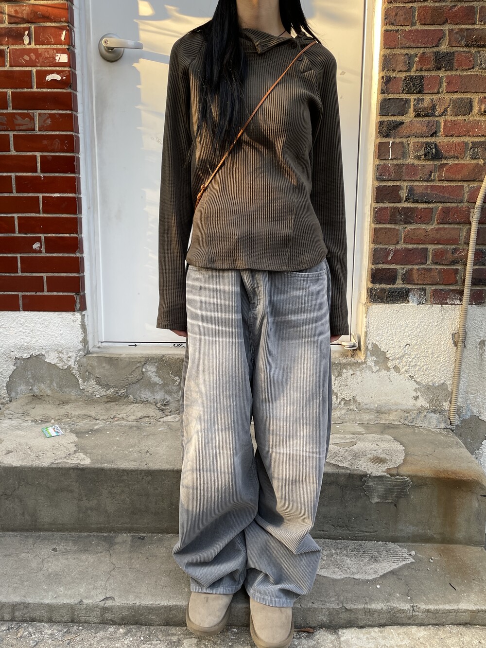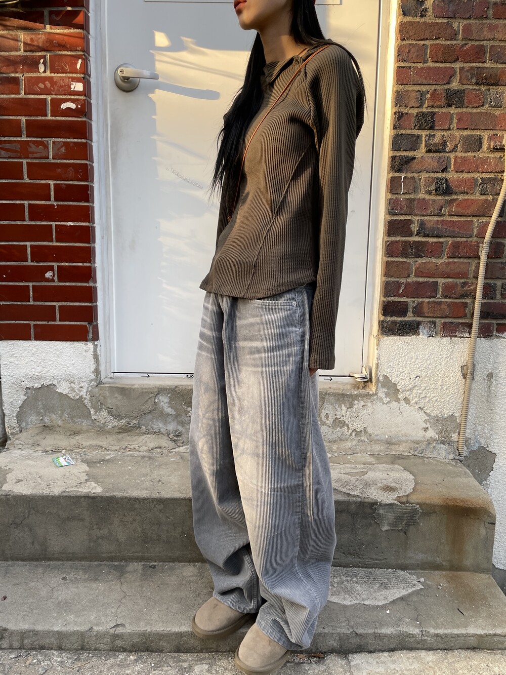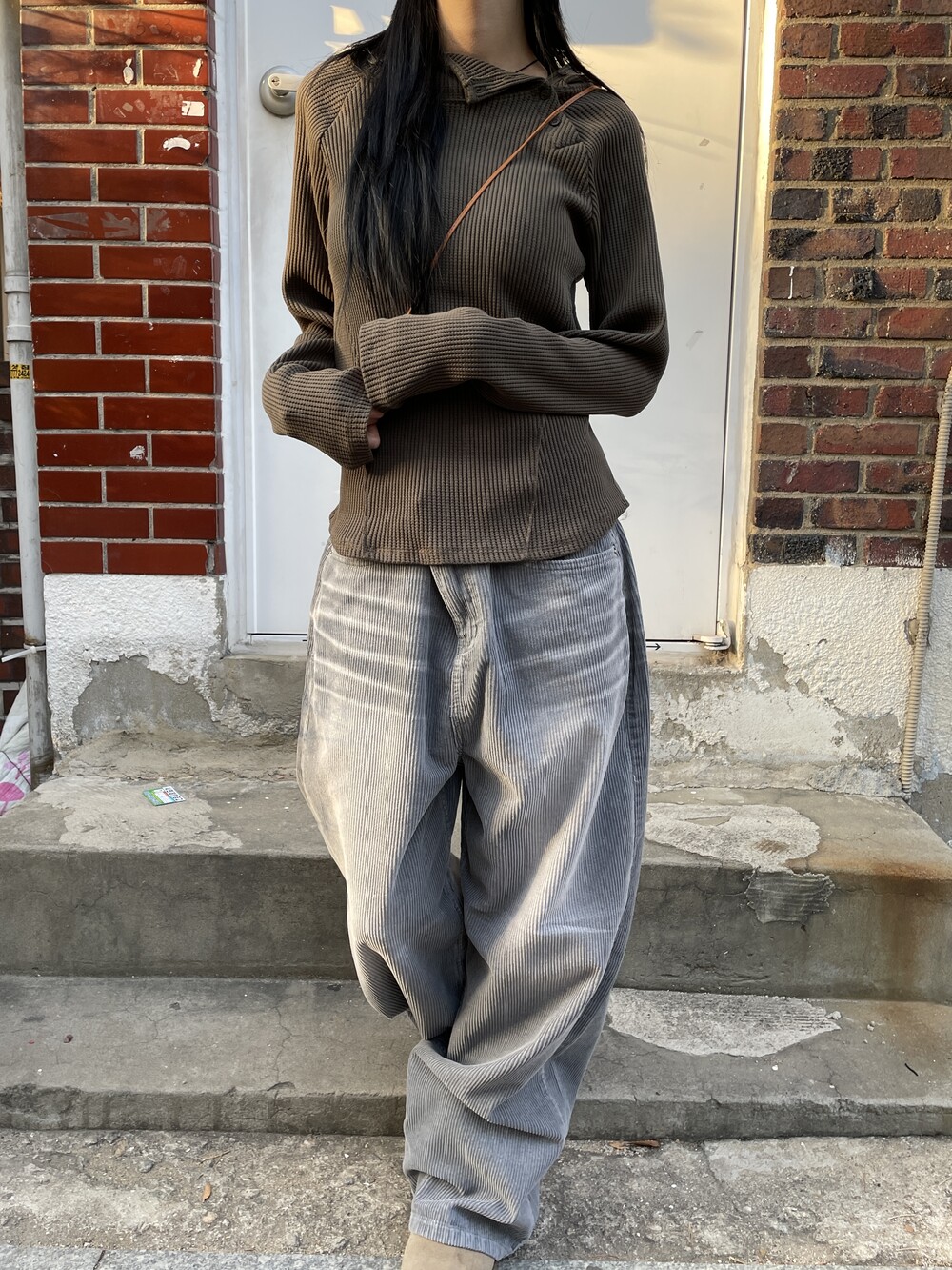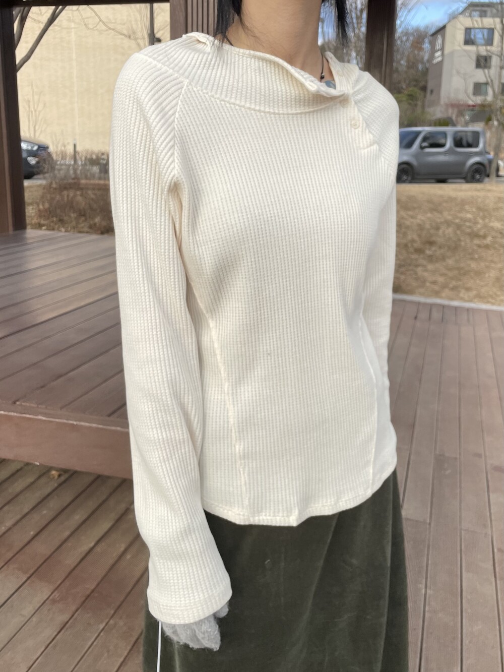 허리라인부터 밑단까지 내려오는 절개 디테일로 허리가 얇아보이는 시각적 효과를 주며, 와플소재감이 주는 특유의 빈티지한 무드로 코디의 완성도를 높여주는 제품입니다.