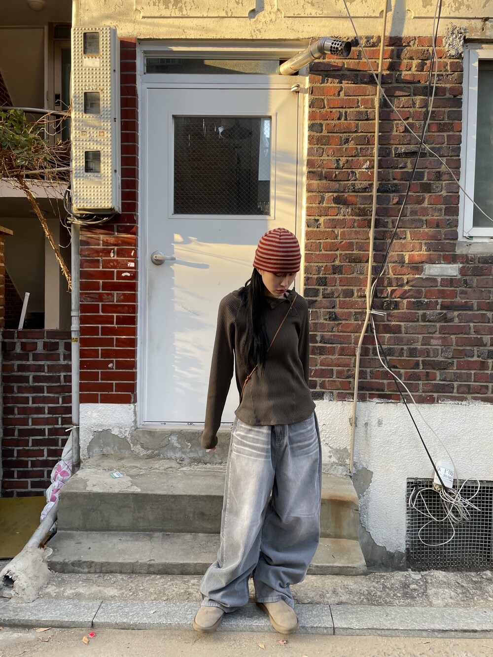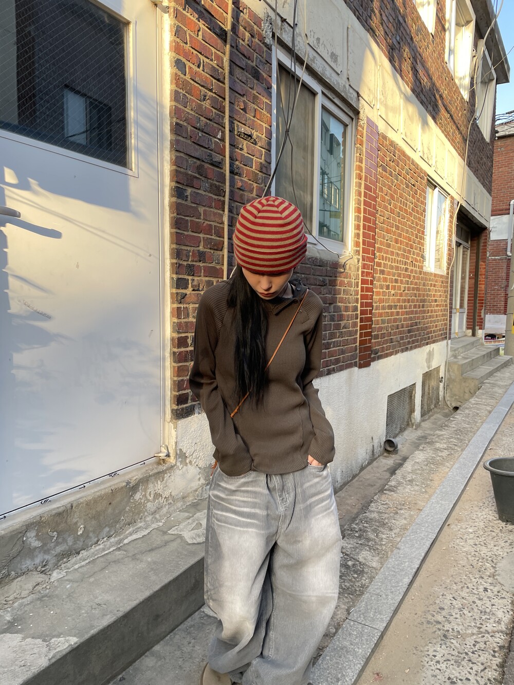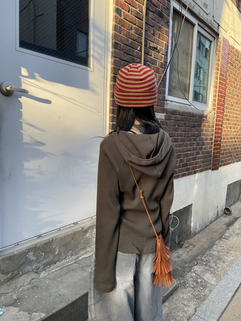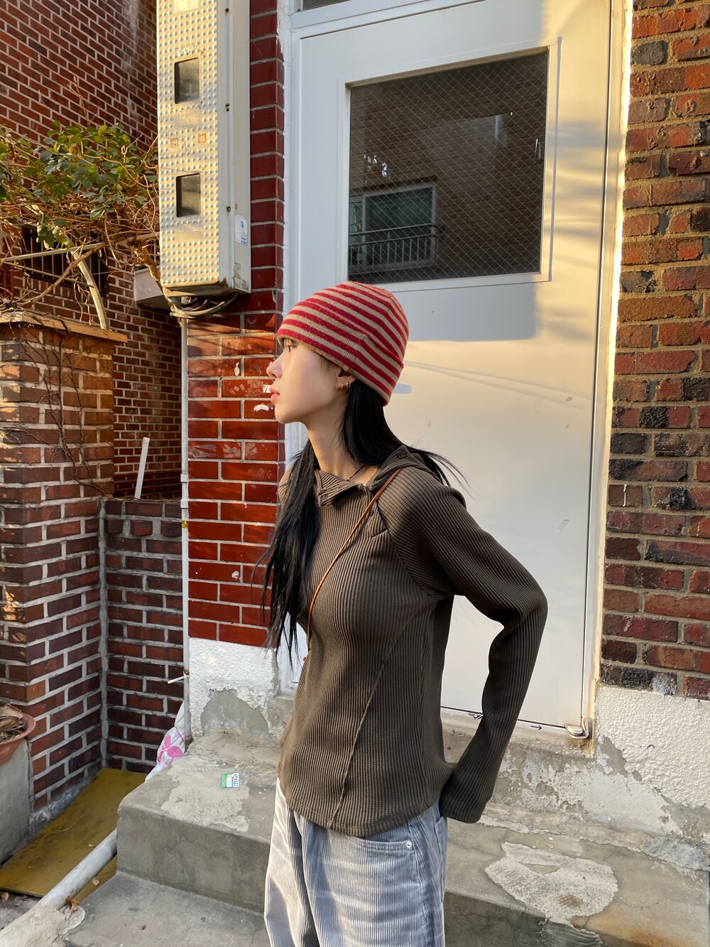 허리라인부터 밑단까지 내려오는 절개 디테일로 허리가 얇아보이는 시각적 효과를 주며, 와플소재감이 주는 특유의 빈티지한 무드로 코디의 완성도를 높여주는 제품입니다.