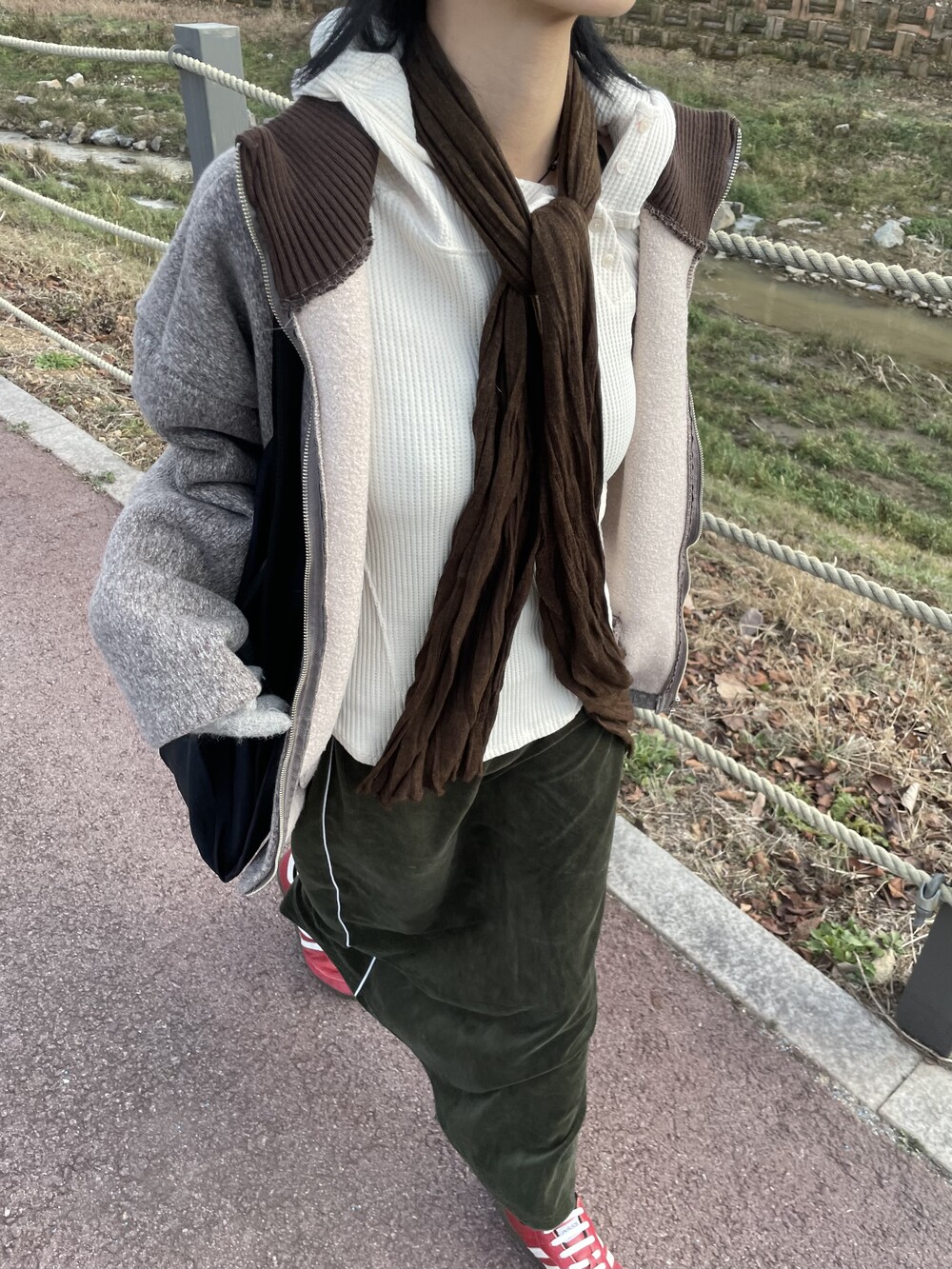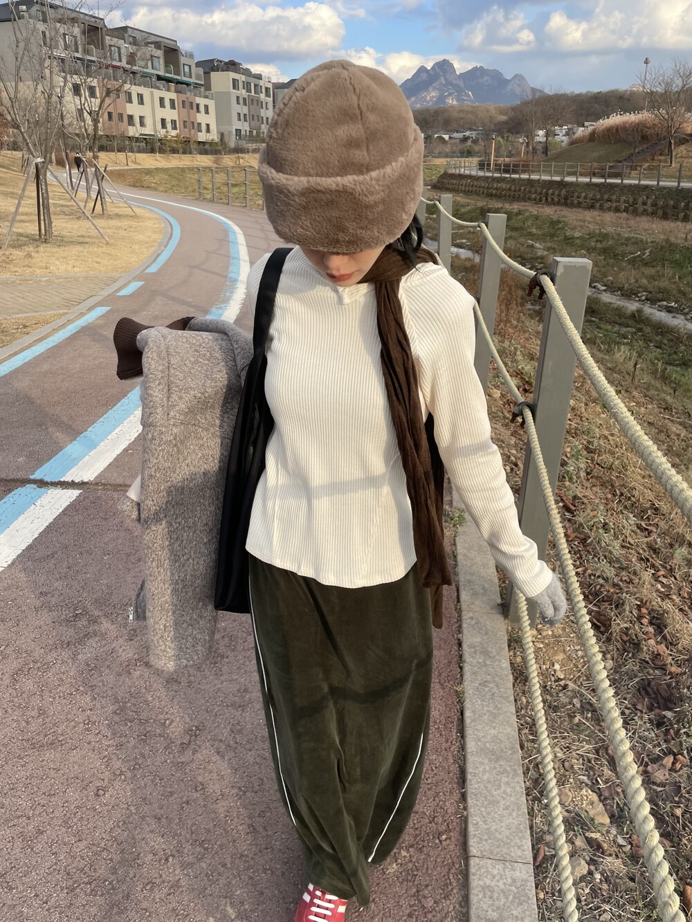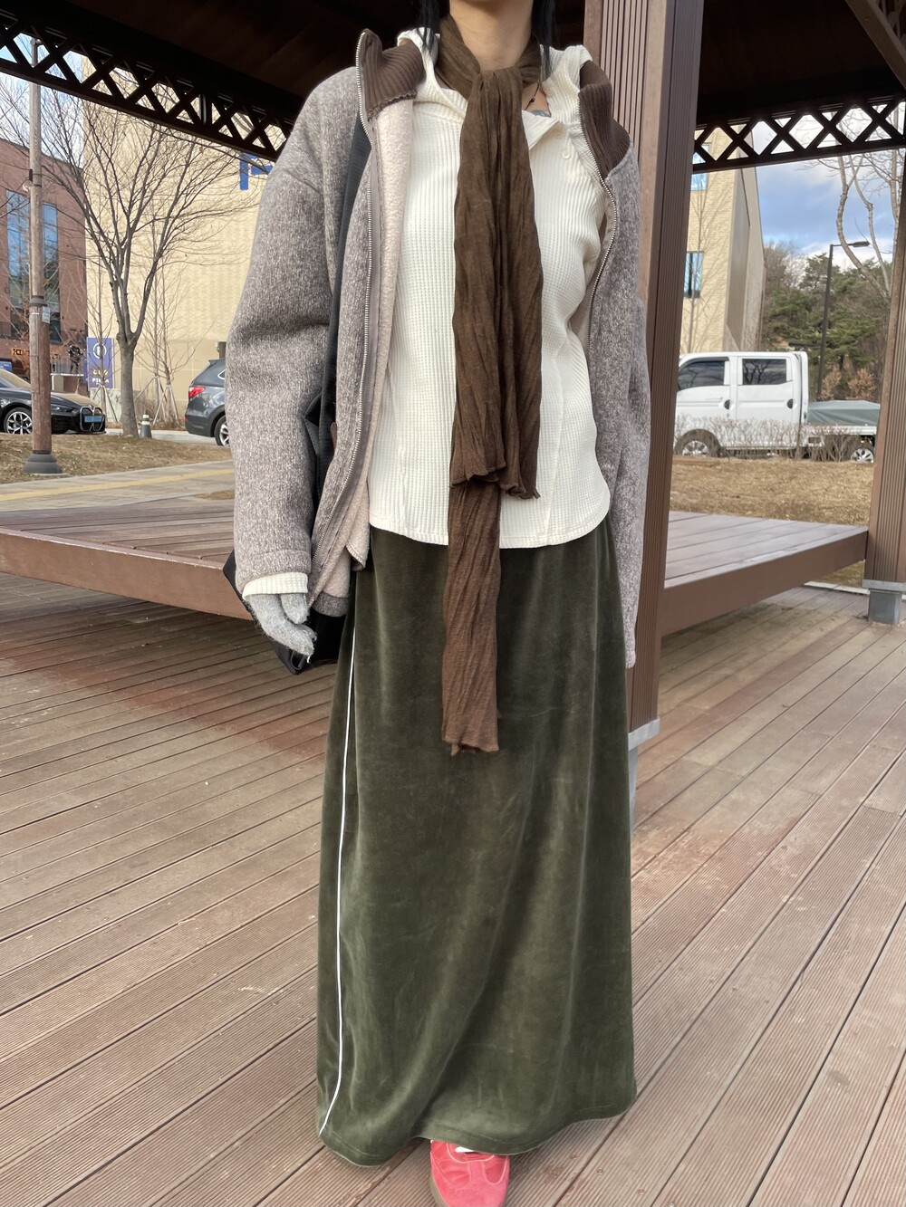 롱하고 루즈하게 떨어지는 기장감의 실루엣으로 레이어드에 용이한 제품입니다.