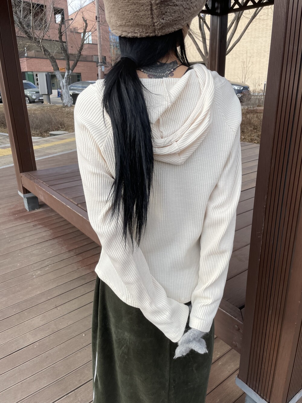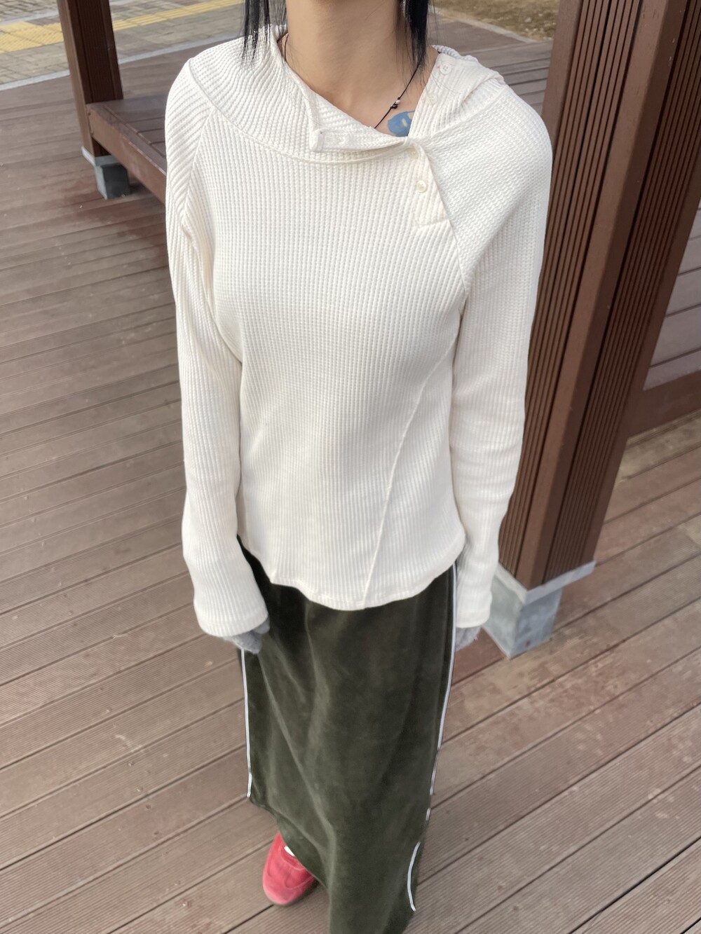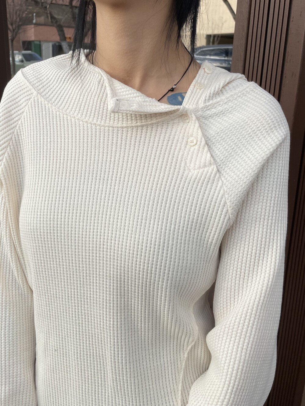cross button waffle hoody