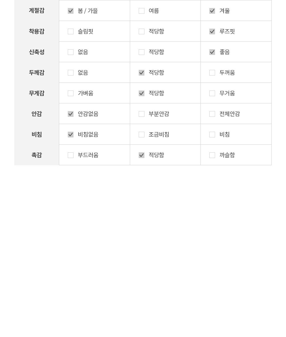 - 세탁방법 : 드라이클리닝을 권장합니다.