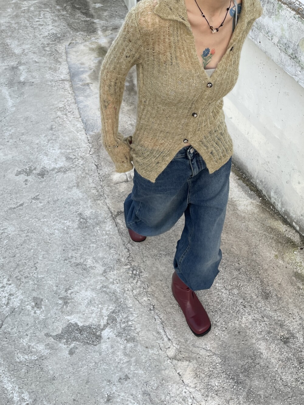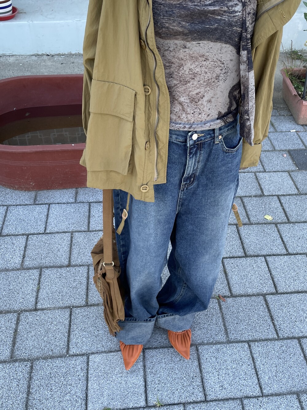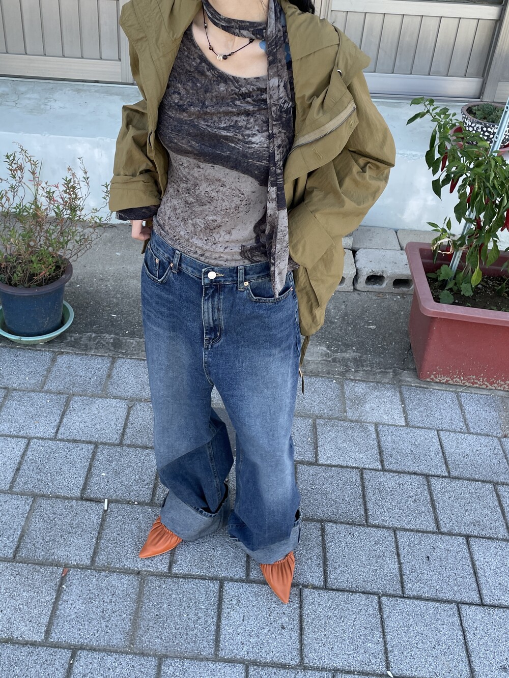 로우라이즈 핏감과 와이드하고 루즈하게 떨어지는 실루엣으로 매력적인 아웃핏을 선사하며,