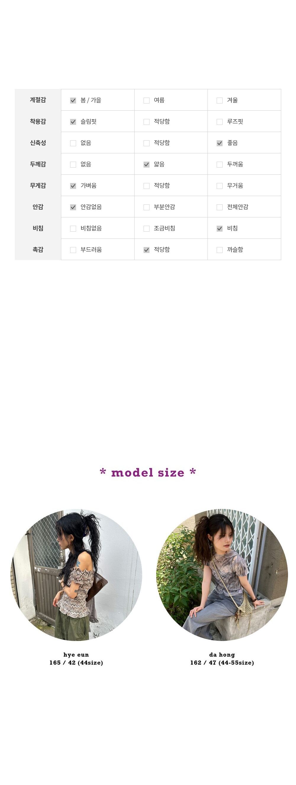 - 촬영 환경과 해상도에 따라 제품 색상이 달라보일 수 있으며, 피팅샷이 실물색상과 더 유사합니다.