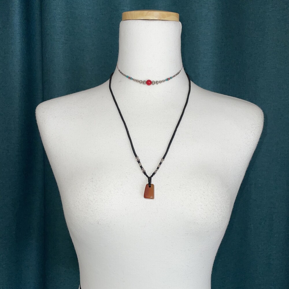 초커실루엣의 제품이며 내구성이 좋은 카본나일론 끈과 실버로 제작된 제품입니다.