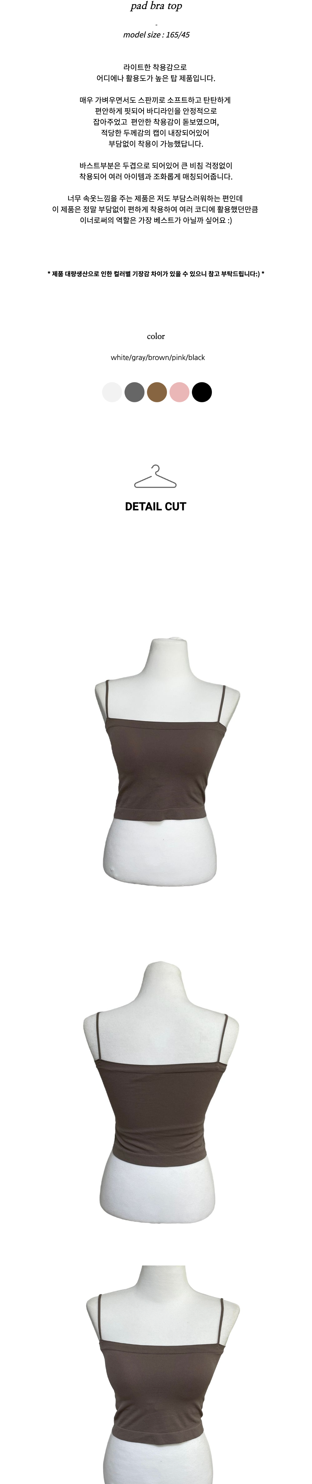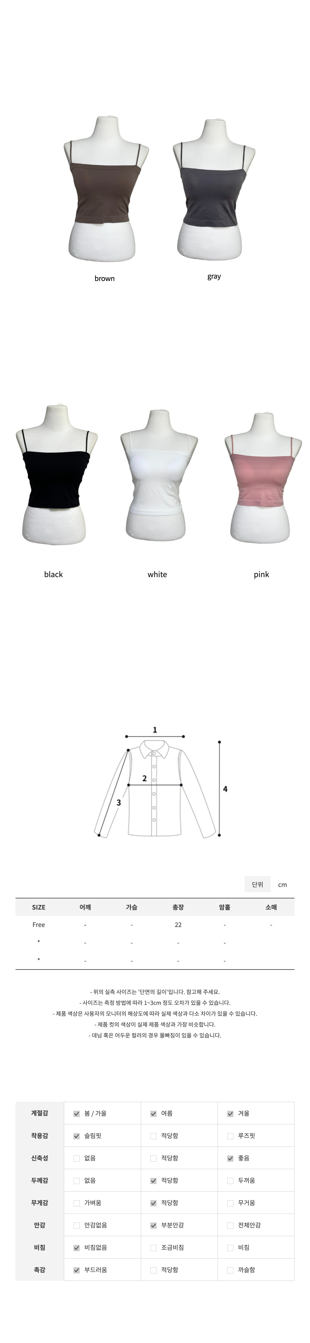 - 촬영 환경과 해상도에 따라 제품 색상이 달라보일 수 있으며, 피팅샷이 실물색상과 더 유사합니다.