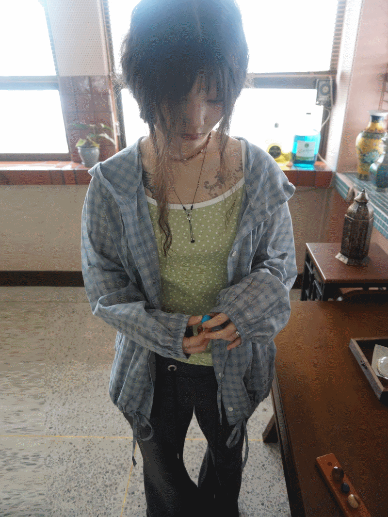 허밍 체크 후드셔츠