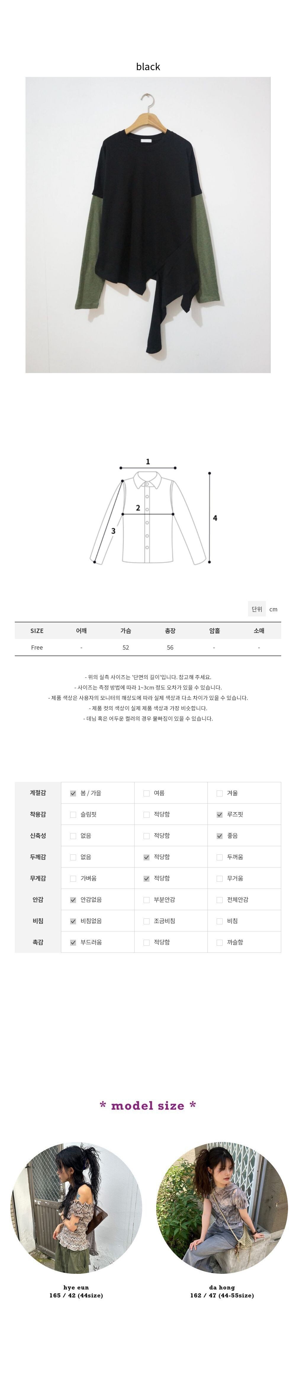 콤비 언발 슬리브t