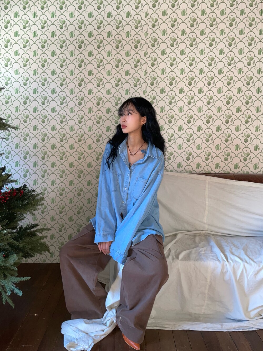 스탠다드한 카라 디자인으로 클래식한 느낌을 주며, 유행을 타지않는 데님 셔츠로 어디에나 매치하기 좋은 아이템입니다.